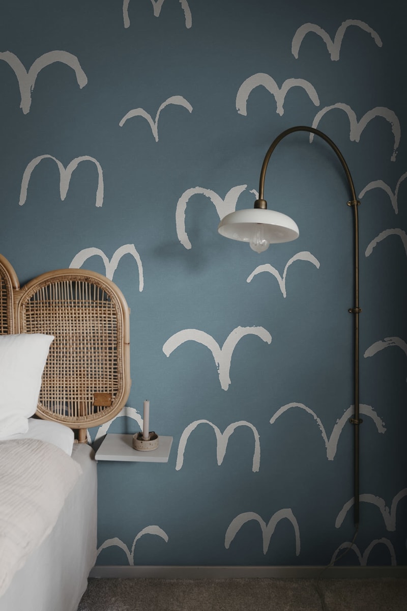 Transformă-ți casa cu captivantul tapet Bird din colecția exclusivă Fine Little Day, o colaborare unică cu Rebel Walls în cadrul conceptului Meet a Rebel. Acest design surprinde frumusețea jucăușă a naturii, prezentând păsări desenate manual în zbor, aducând un strop de farmec scandinav oricărei încăperi. Fiecare linie și detaliu reflectă măiestria și viziunea artistică pentru care Fine Little Day este renumit, transformându-ți pereții într-o pânză de artă și povestiri. Bird, Blue prezintă un fundal calmant într-un albastru teal profund, amintind de o mare liniștită sau de un cer senin. Motivele păsărilor desenate manual sunt într-un alb strălucitor, creând un contrast izbitor care adaugă o senzație de prospețime și aerisire.
