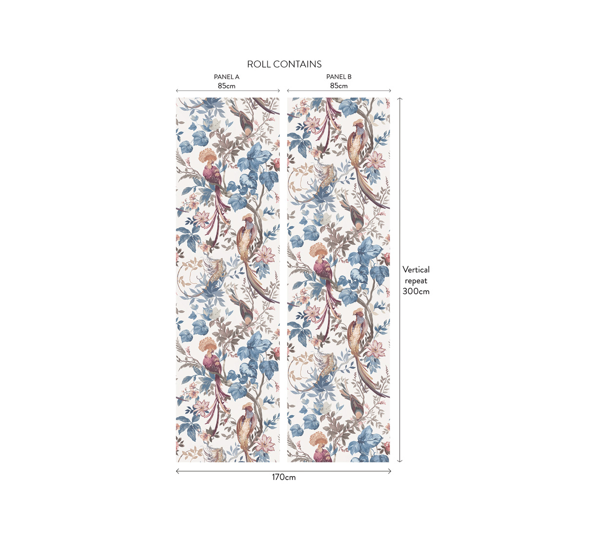 O rolă conține 2 panouri (A și B) pentru designul complet. Modelul poate fi repetat pentru a acoperi pereți mai mari de 1.7 metri utilizând o altă rolă în aceeași ordine (A B). În funcție de înălțimea peretelui, panoul poate fi decupat în partea de sus, jos sau ambele pentru a crea scena dorită.