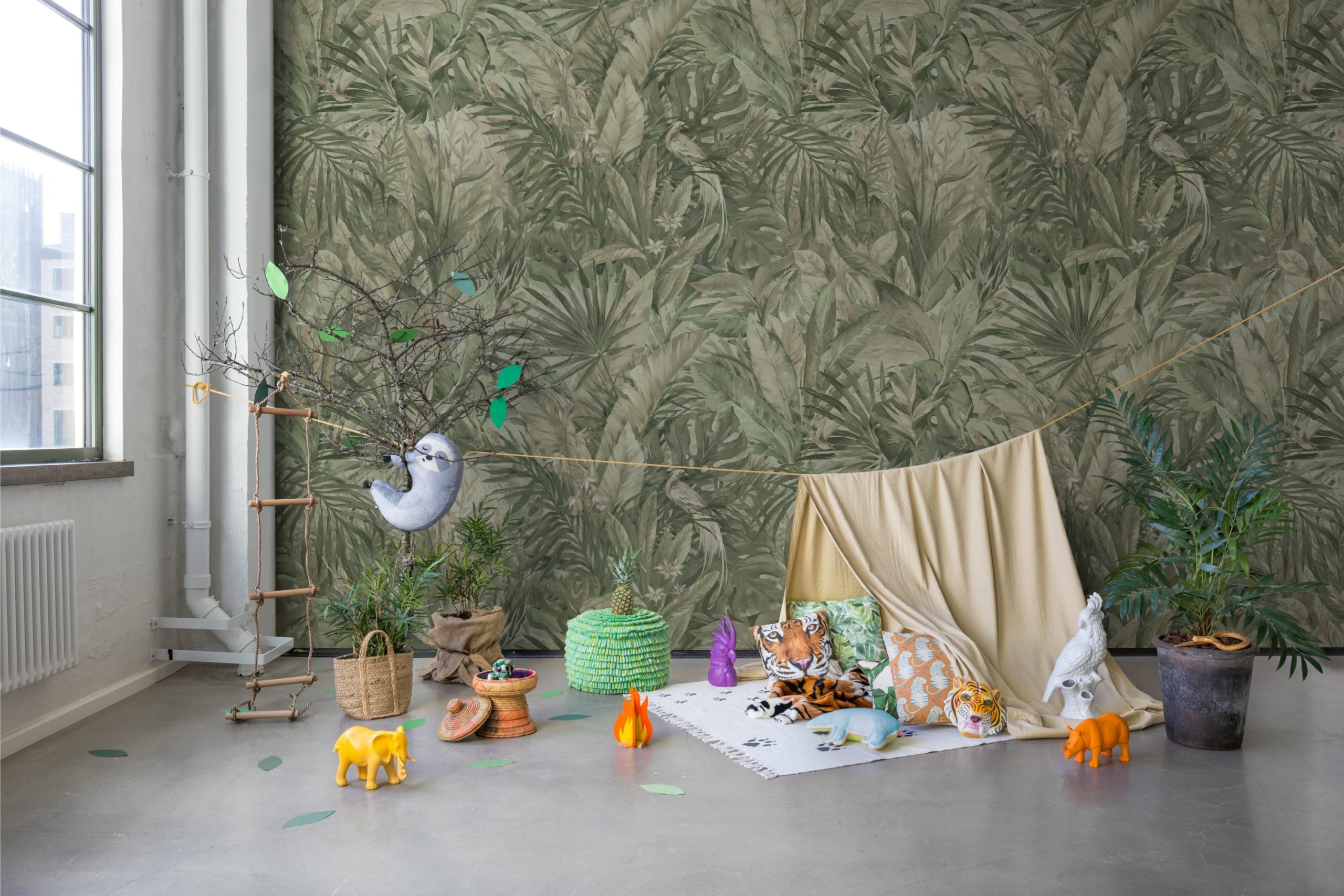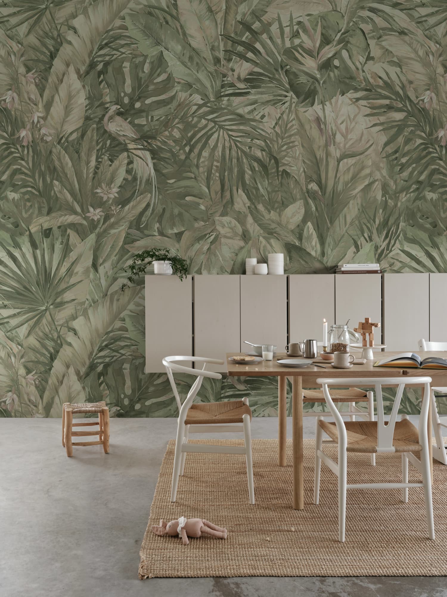 Home Tapet și Fototapet Birds in the Jungle, Light Green, Rebel Walls