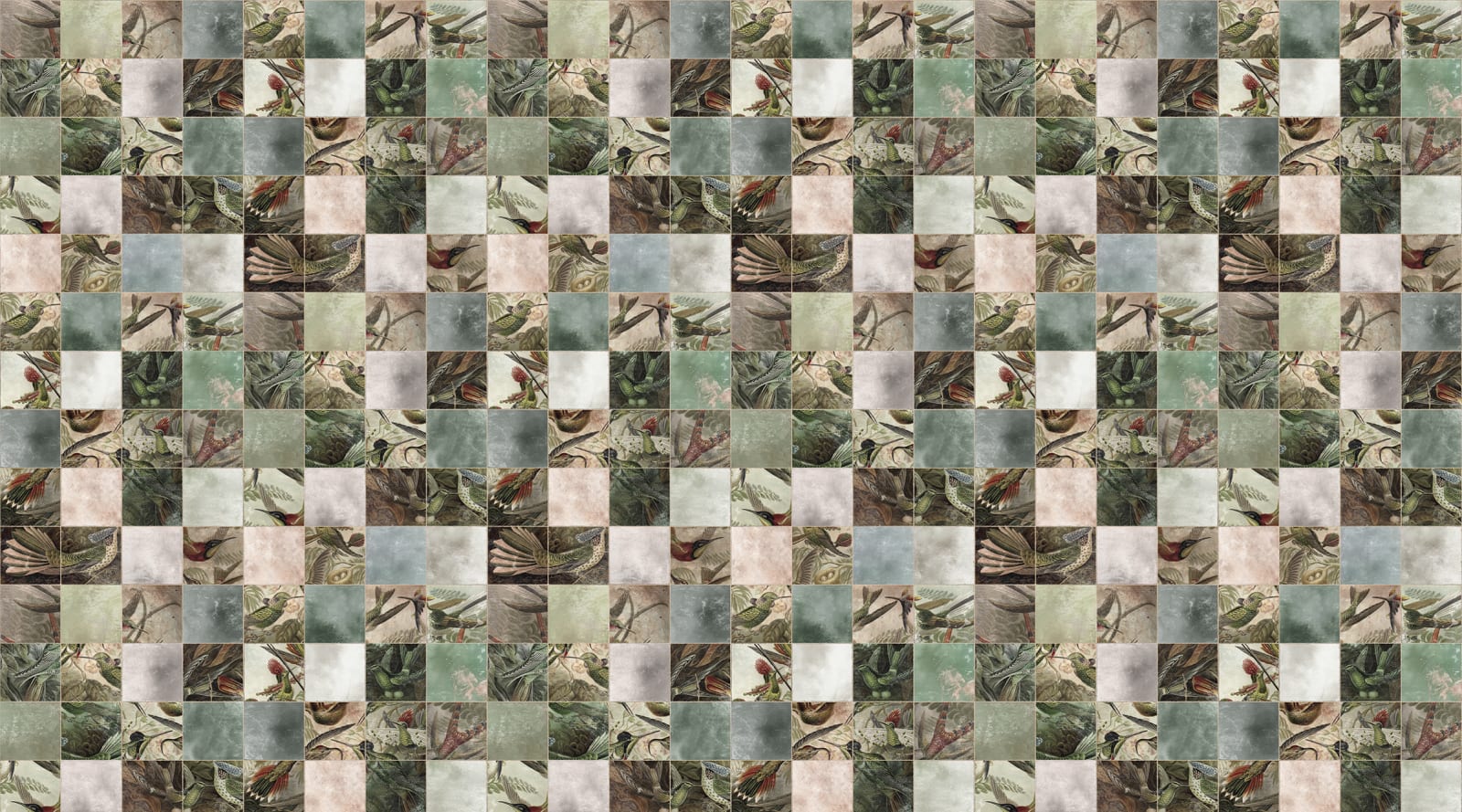 Păsările Colibri sunt bijuteriile pădurii tropicale, întrecându-se în splendoare. Aici, le putem observa într-o compoziție pastelată, care este ornată și simplă în același timp. Plăcile, parcă încă calde de la razele soarelui vor aduce puțin din farmecul păsărilor Colibri.