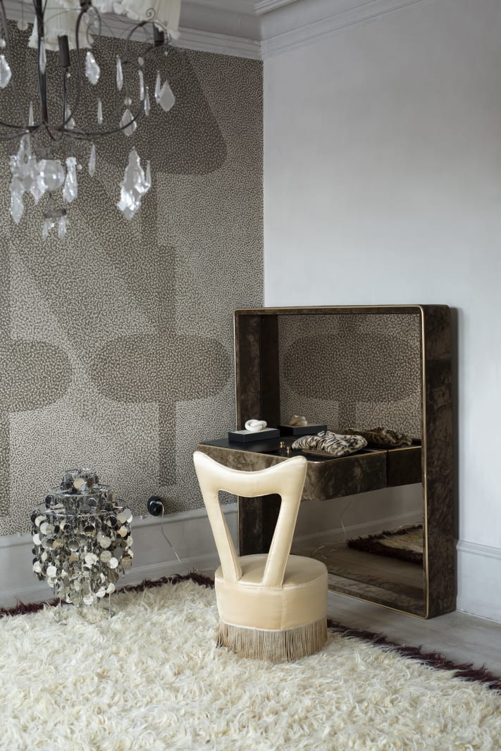 Design de tapet din colaborarea Rebel Walls cu artistul Mic Linder. Multe puncte mici pictate manual creează un model mai mare. Designul Birdseye simbolizează senzația de a privi ceva enorm de la o distanță mai mare. Un munte fluturând în căldura după-amiezii din deșert, o navă luând culorile cerului la orizont. Senzația de a te ridica pe acoperiș și de a privi în jos într-o zi cu ceață.