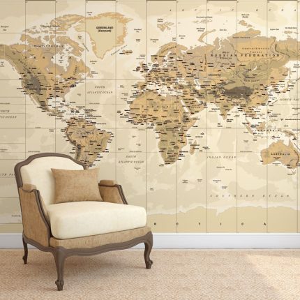 Classic Vintage Map este o tapet ce te va transporta în timp. Cu o hartă detaliată a lumii, realizată în