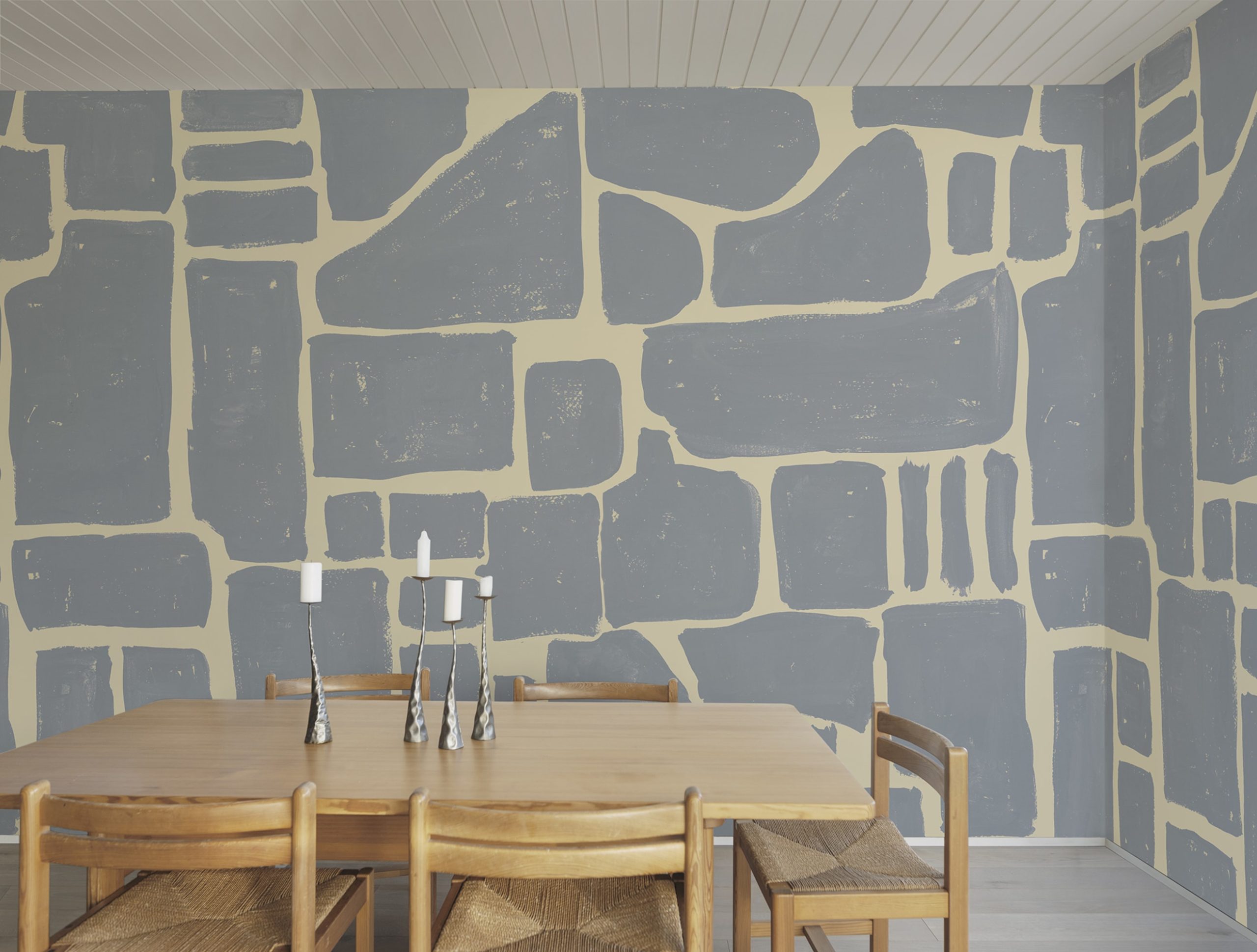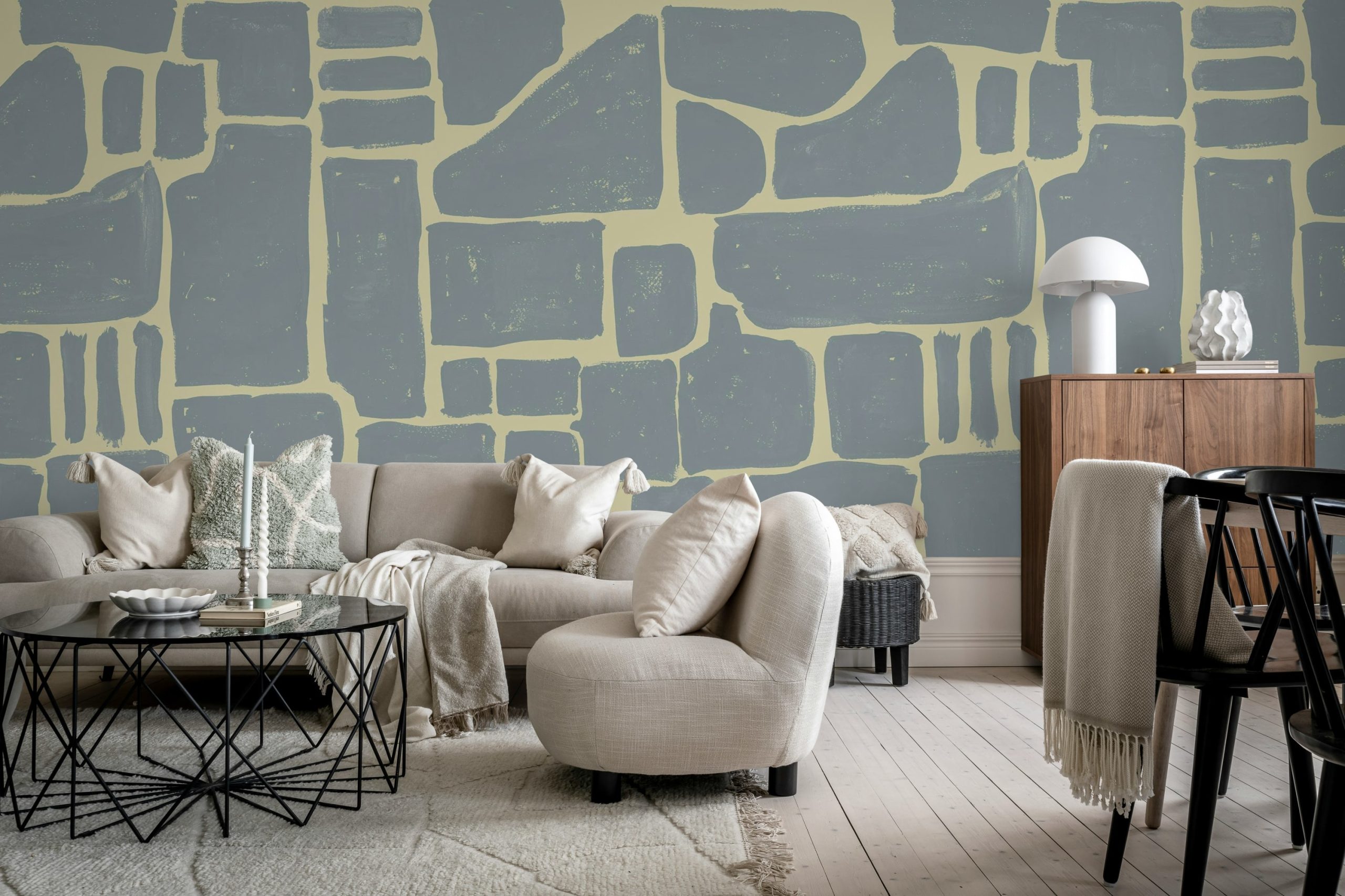 Home Tapet și Fototapet Block Print, Blue & Yellow, Rebel Walls