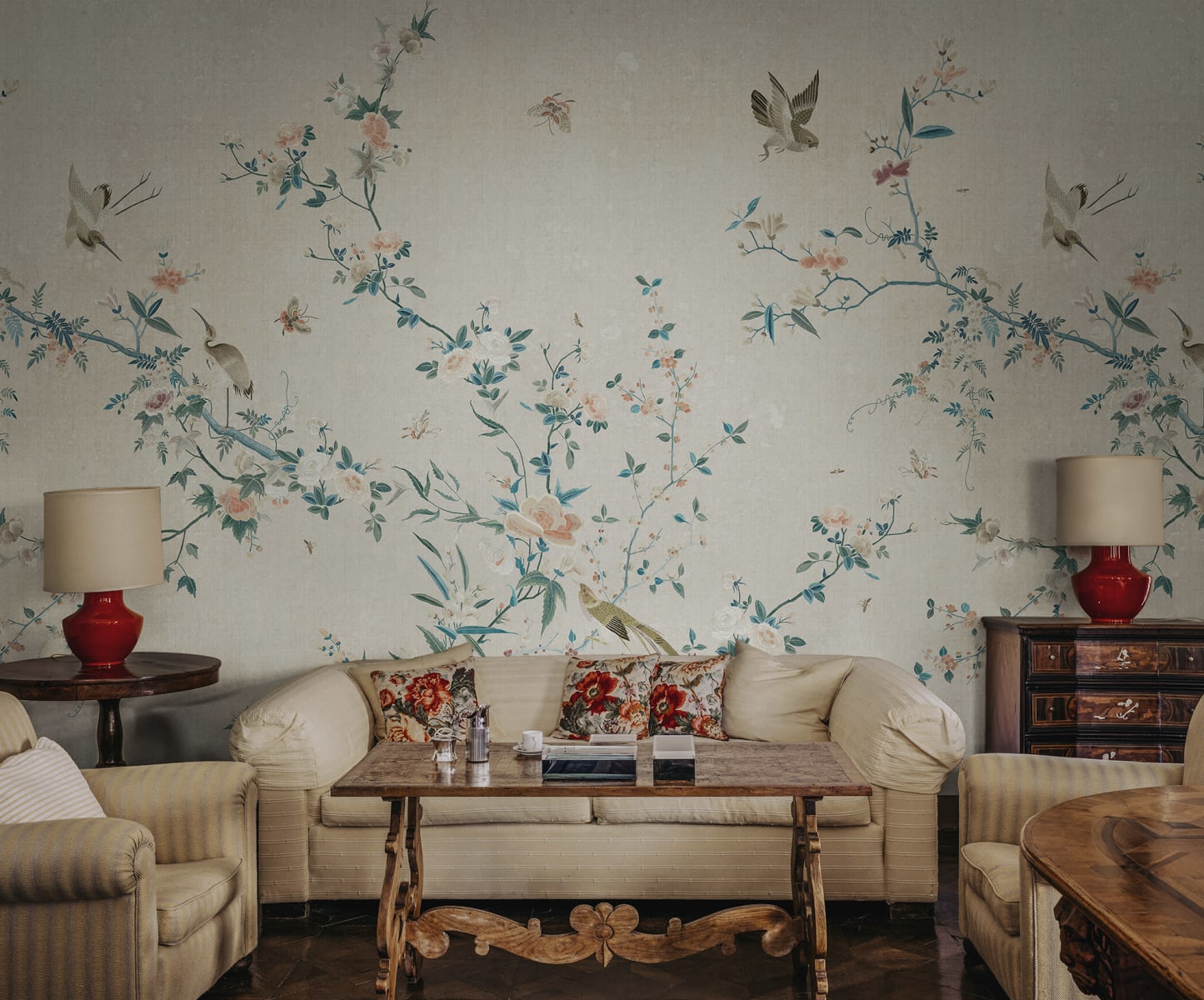Informații generale:mostră disponibilă:da|Tapet > Detalii tehnice:Material:non-woven (vlies)|Tapet > Caracteristici vizuale:Repetitivitate model:doar pe orizontala|Tapet > Caracteristici vizuale:Colecție:Chinoiserie Garden|Culori:Paletă culori RGB:#C6BFAD, #AF8670, #49675D, #3D3624, #805350|Culori:Paletă culori RAL:RAL 7032, RAL 3012, RAL 7009, RAL 6022, RAL 8002|Culori:Paletă culori:Gri, Gri Pietricică, Roșu, Roșu-Bej, Gri, Gri-Verde, Verde, Verde Monoton, Maro, Maro Semnal
