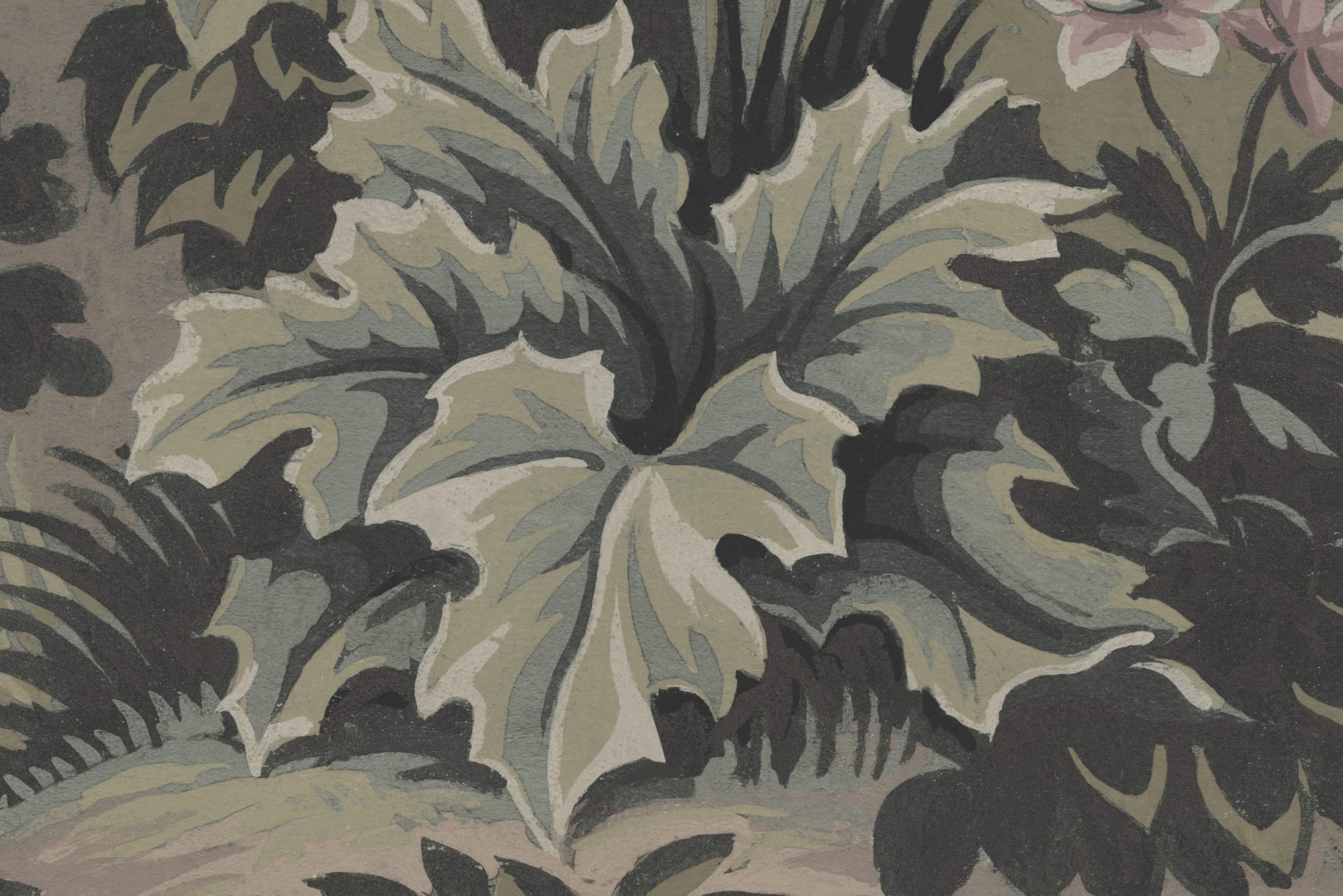 Un model botanic cu detalii uimitoare pictate manual. Verdeața prinde viață în mod contrastant și profund. Atât maiestuos, cât și dramatic, ar putea fi fundalul perfect pentru o sufragerie îndrăzneață.