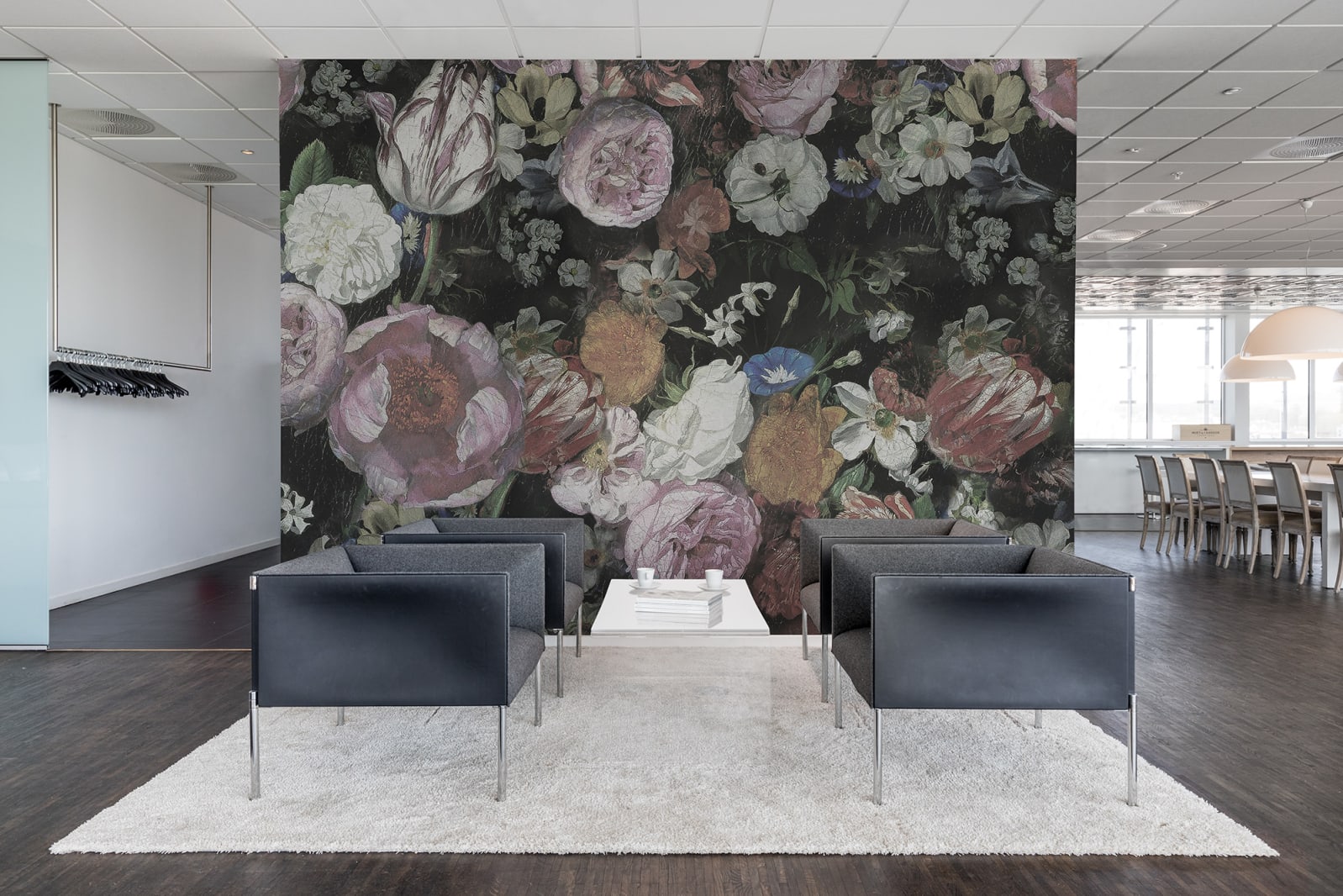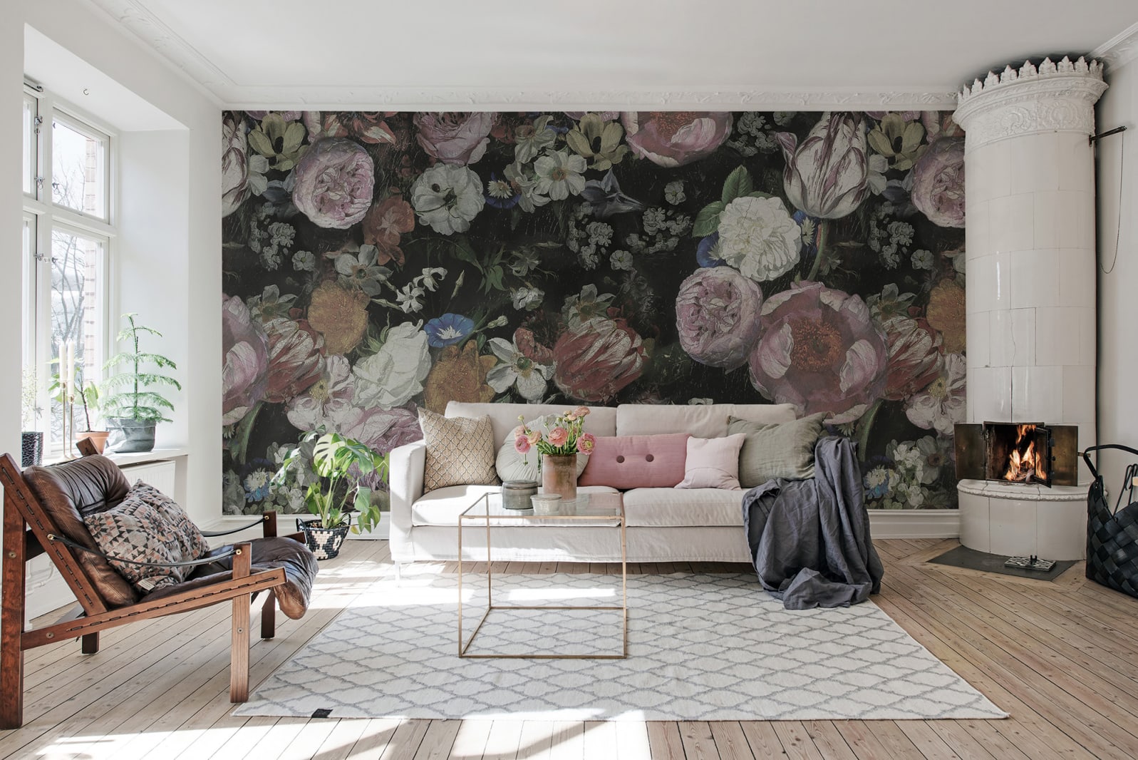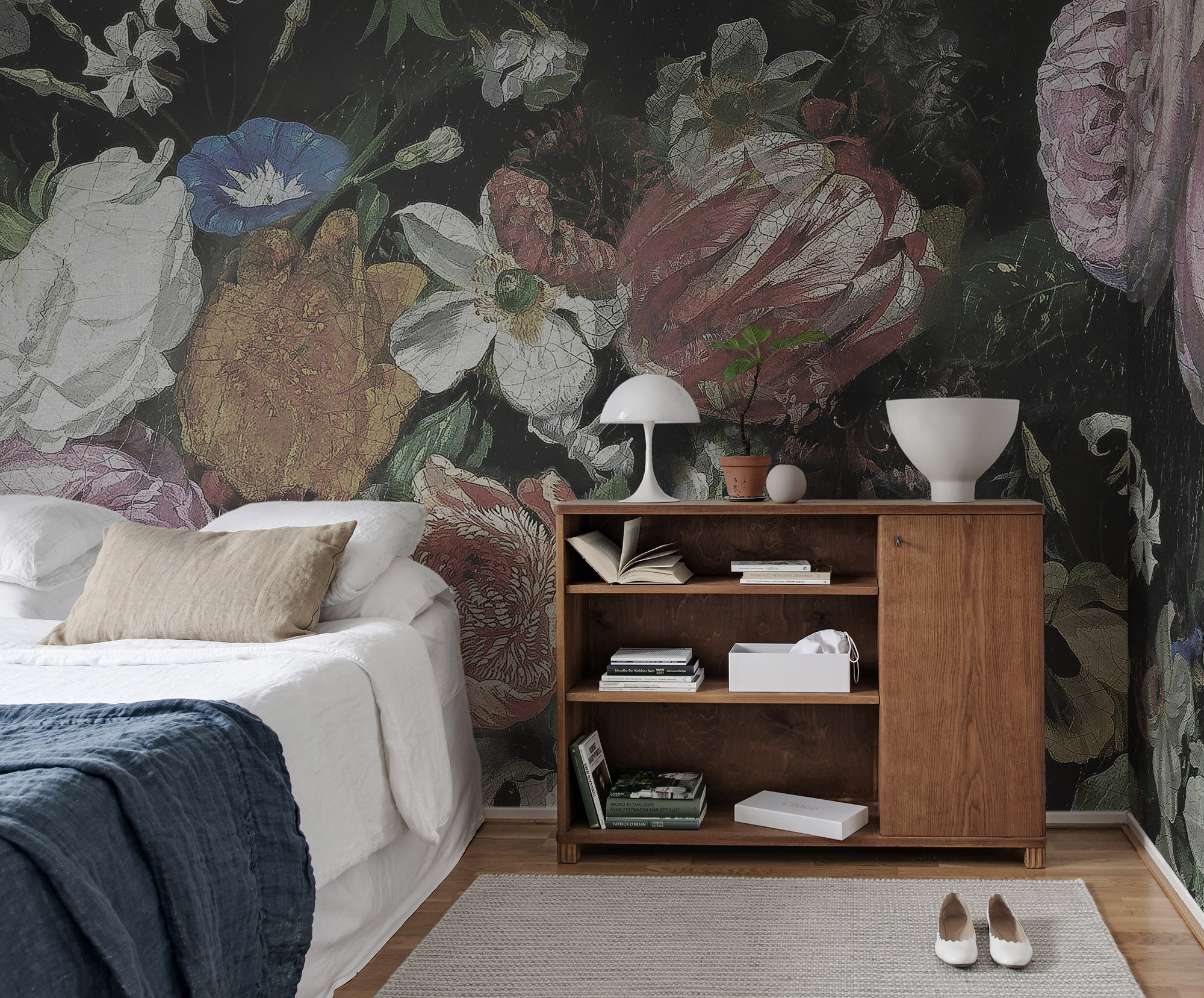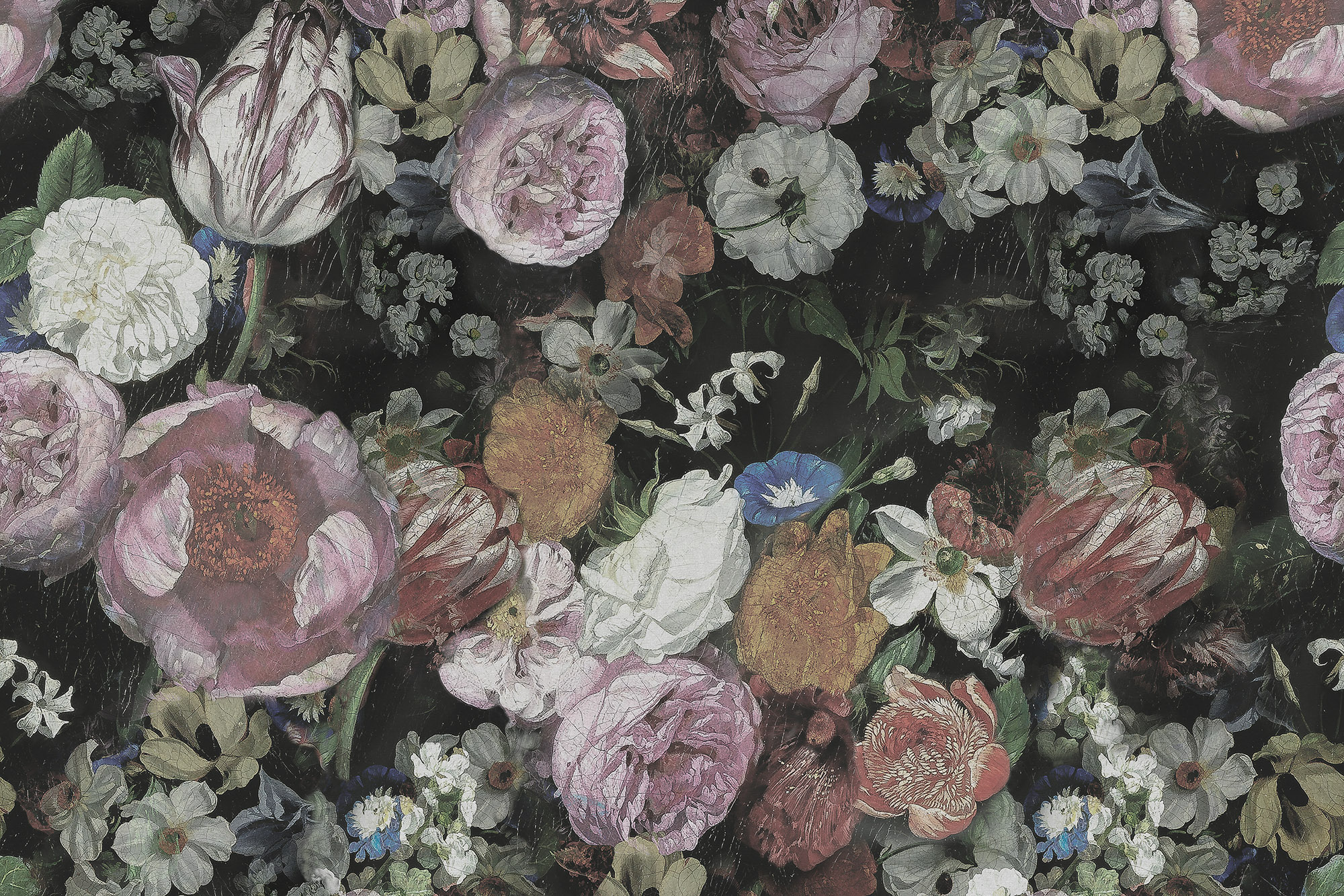 Frumusețea răpitoare a florilor este transformată într-o pictură clasică în ulei. Oferind iluzia unui tablou vechi, culorile s-au uscat creând fisuri fermecătoare care curg într-un mod decadent pe pânză. Acest fototapet ar fi perfect pentru un perete de accent.