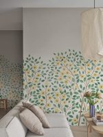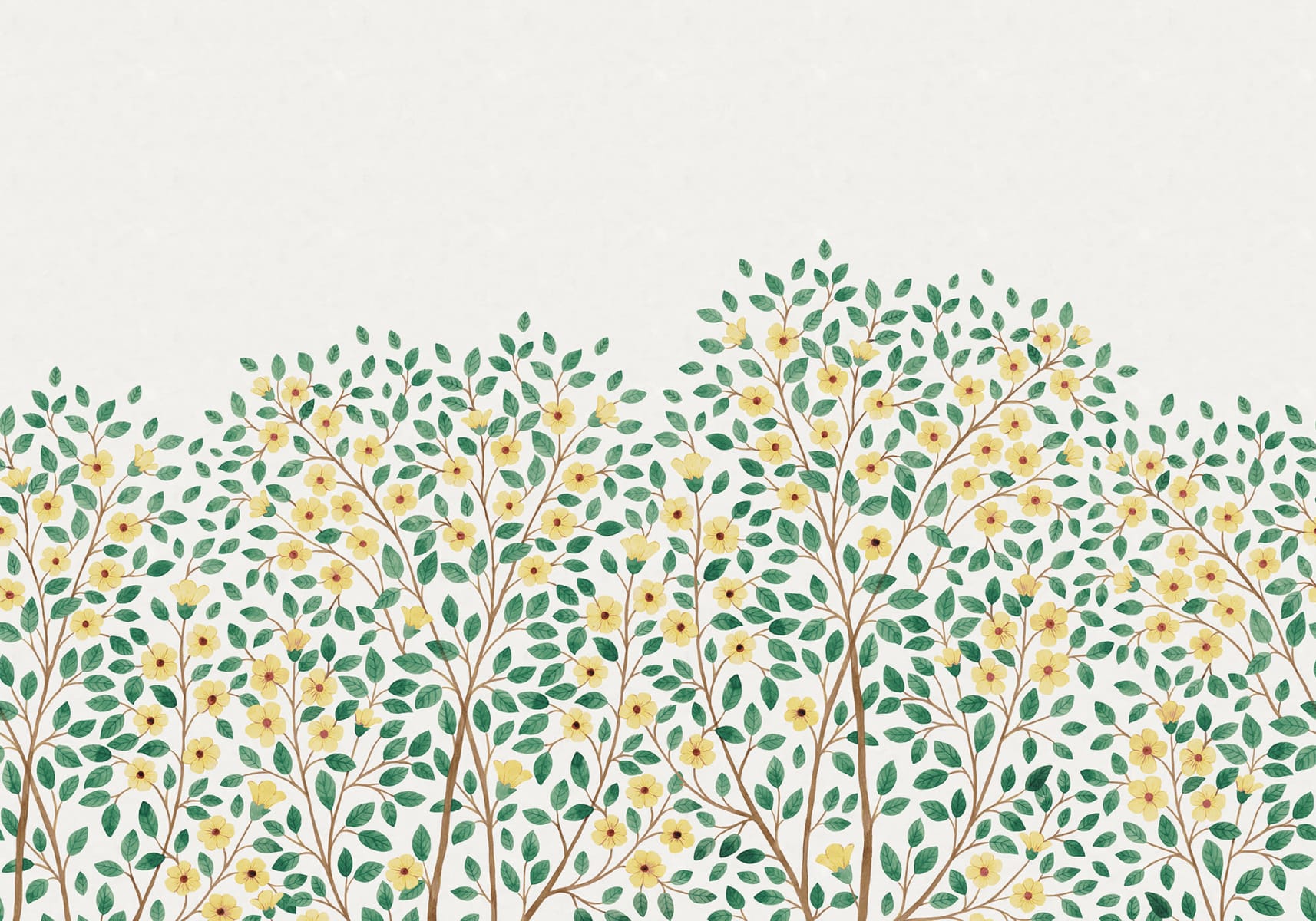 Blossom Tree este o acuarelă pictată manual cu arbori înfloriți uimitori, cu flori delicate care cad în cascadă pe pereți. Modelul aerisit și romantic conferă camerei o atmosferă de vis, liniștită. Blossom Tree, Yellow, are o bază deschisă, flori galbene, frunze verzi, vii și detalii maro.