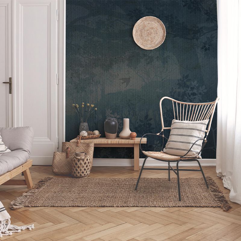 Creează un decor captivant cu acest tapet! Designul său misterios, cu tonuri de albastru închis și detalii subtile, va transforma orice cameră într-un spațiu relaxant și elegant.