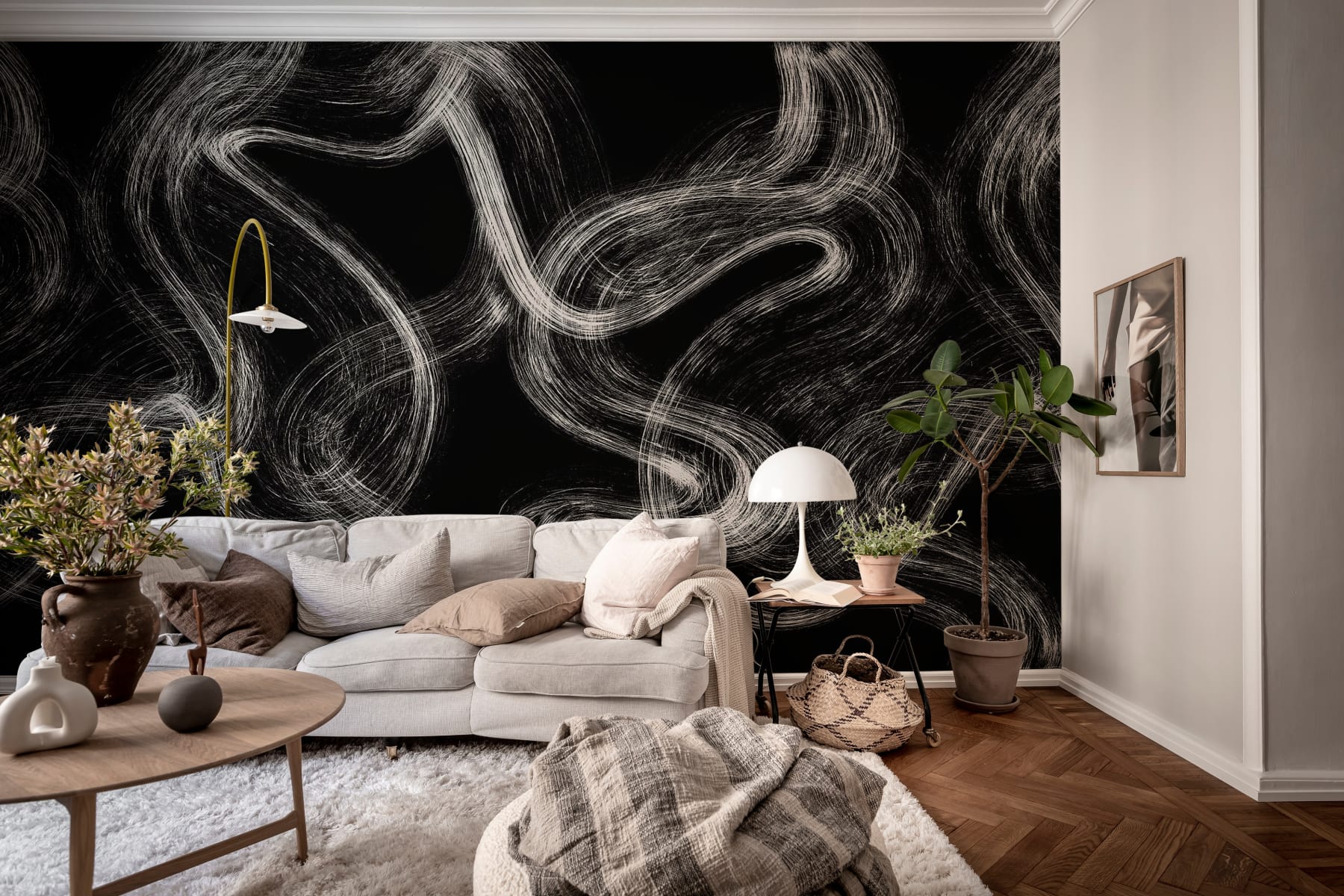 Dungile sunt favorite! Acest model grafic face o impresie îndrăzneață și artistică, creând o declarație pentru orice casă contemporană. Desenate manual, liniile conferă un aspect tactil și autentic peretelui tău. Dungile sunt perfecte pentru a crea un aspect organic și artistic în spațiul tău. Paleta de culori Black are o bază neagră și linii albe.