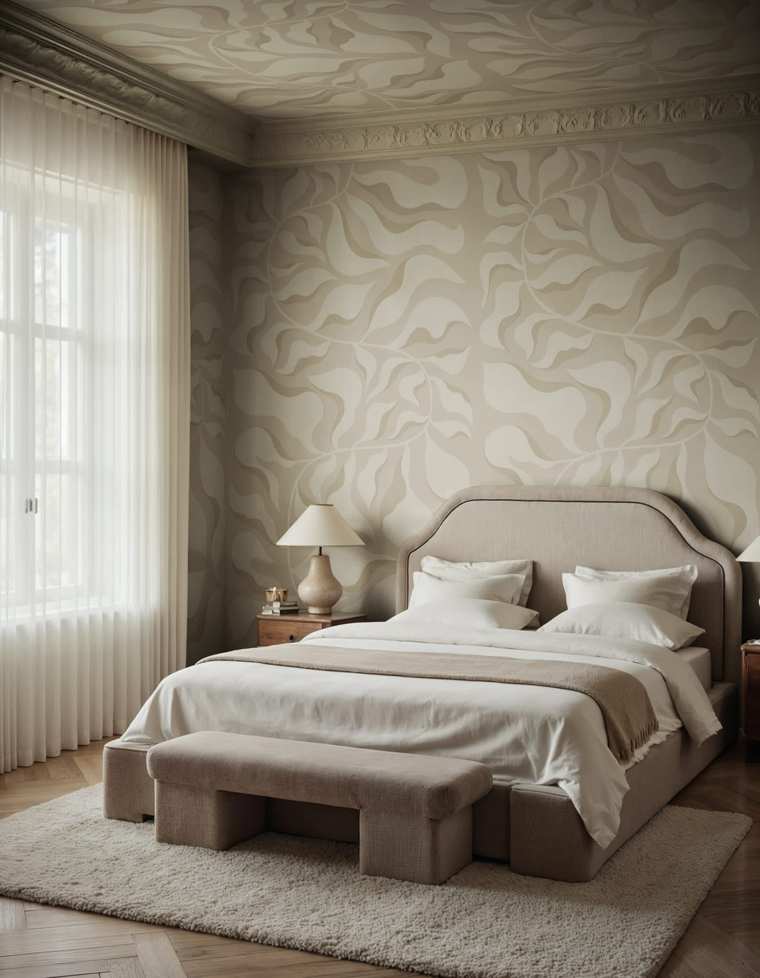 Acest tapet bej aduce un aer sofisticat și natural în orice cameră. Perfect pentru un dormitor relaxant sau un living primitor.