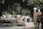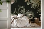 Transformă-ți casa cu un fototapet spectaculos. Fundalul negru intens pune în valoare motivele florale delicate, creând un ambient sofisticat și modern. Ideal pentru living sau dormitor, adaugă un plus de eleganță spațiului tău.