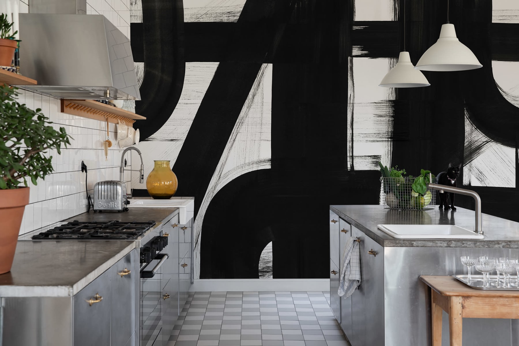 Grafic și îndrăzneț, acest design își lasă cu siguranță amprenta. S-ar putea să fie cel mai cool fundal pentru spațiul tău. Acest design conferă casei tale un aer contemporan, dar în același timp artistic. Paleta de culori, Black & White, este exact asta, negru și alb.