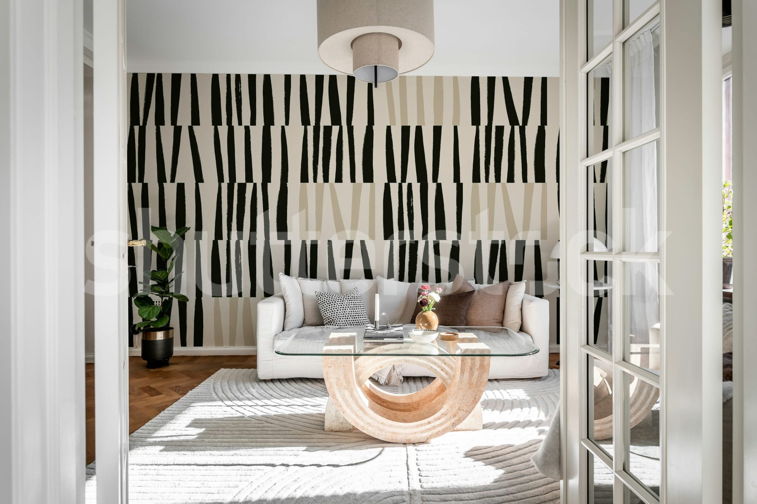 Adaugă un strop de modernitate cu acest tapet decorativ. Designul îndrăzneț, în nuanțe de negru și bej, va transforma orice cameră într-un spațiu elegant și primitor.