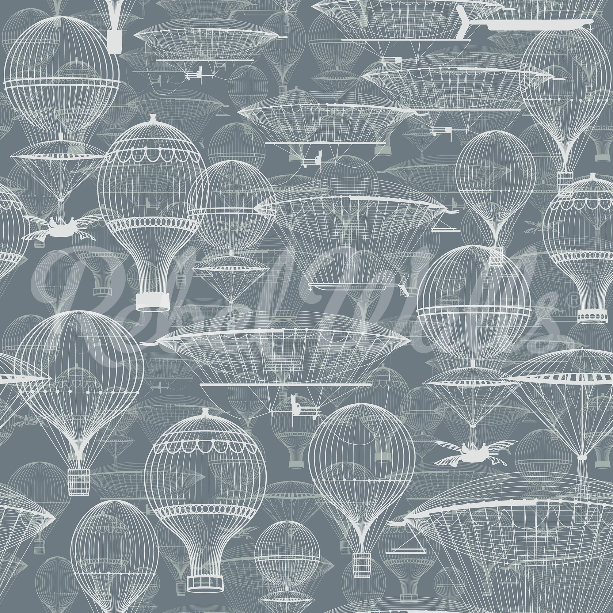 Fototapet cu baloane cu aer cald pe fundal albastru. Creează o atmosferă unică în camera copilului sau în orice spațiu dorești.