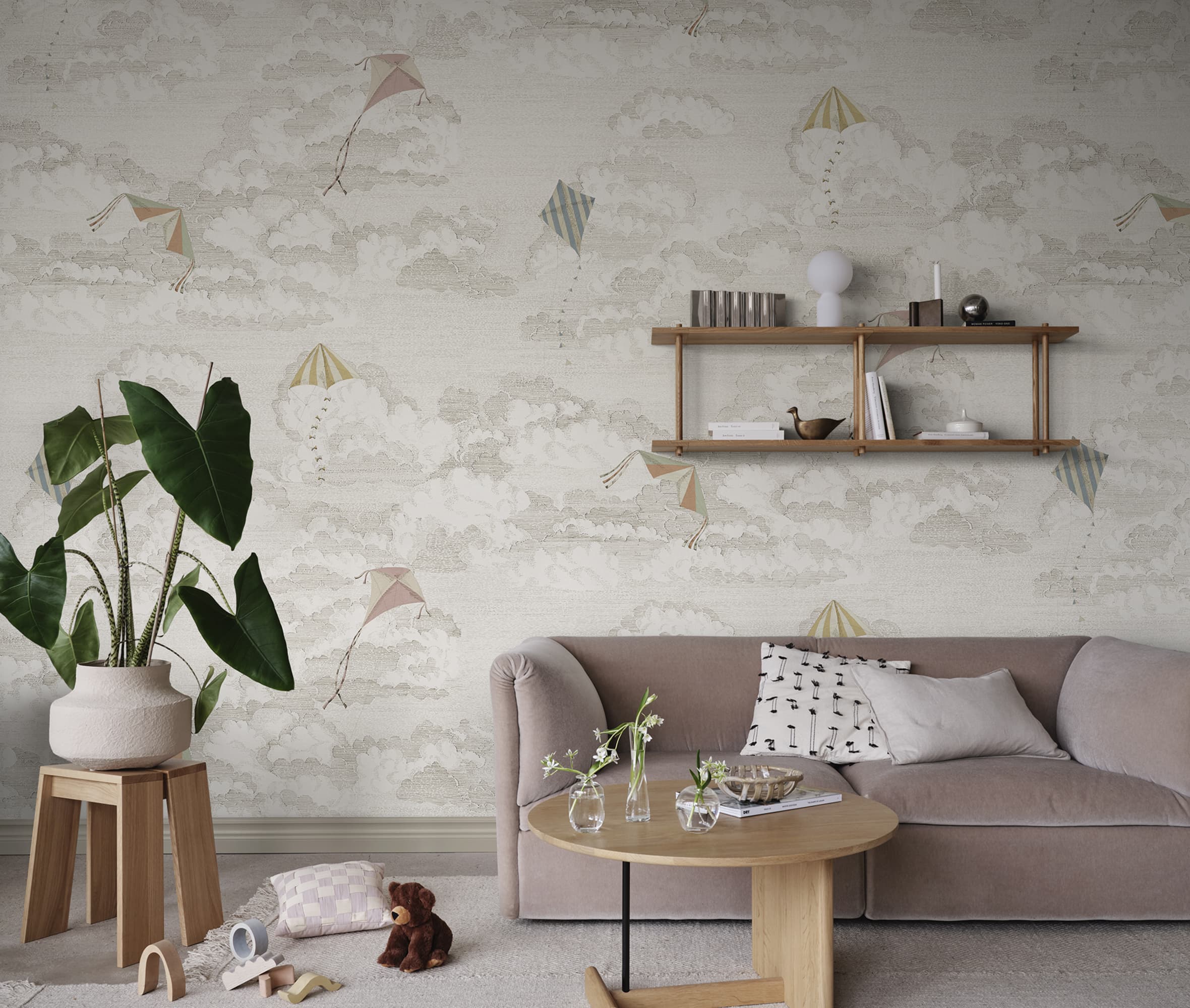Perfect pentru camera copiilor, acest tapet aduce un aer vesel și relaxant. Designul cu zmee și nori creează o atmosferă caldă și primitoare. Un decor ideal pentru cei mici!