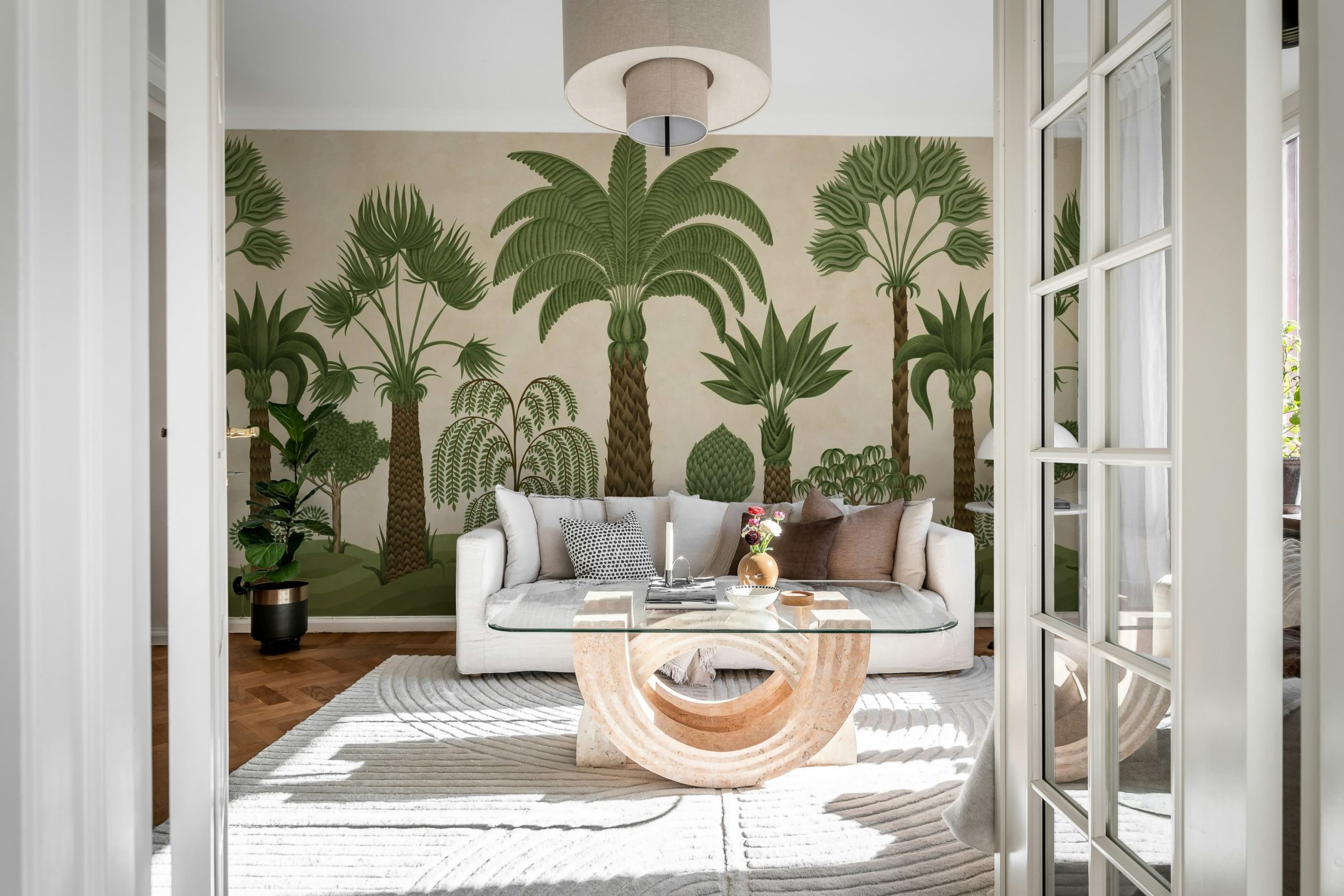 O evadare tropicală la tine acasă!Acest tapet bej cu motive botanice aduce un plus de prospețime și eleganță oricărui interior. Perfect pentru un decor relaxant și sofisticat.