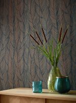 Frunzele șerpuite delicate cad ușor pe pereți, creând nuanțe subtile de mărgele strălucitoare în albastru amurg, verde mineral și roz delicat de mușețel, sau caramel cu cupru strălucitor.