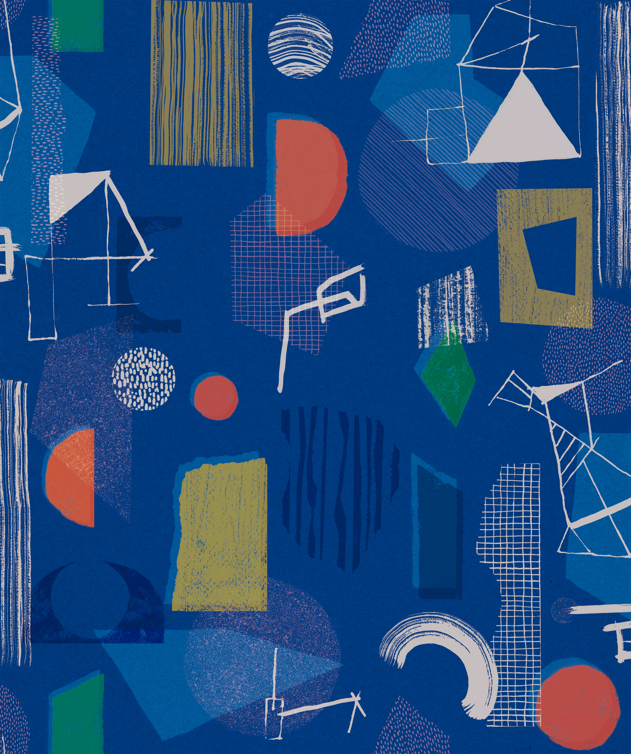 Brave Partiture, Blue, din colecția L’Enfant Terrible, este un design geometric, în nuanțe de albastru/bleumarin. Reinterpretare îndrăzneață a unei partituri muzicale de jazz.