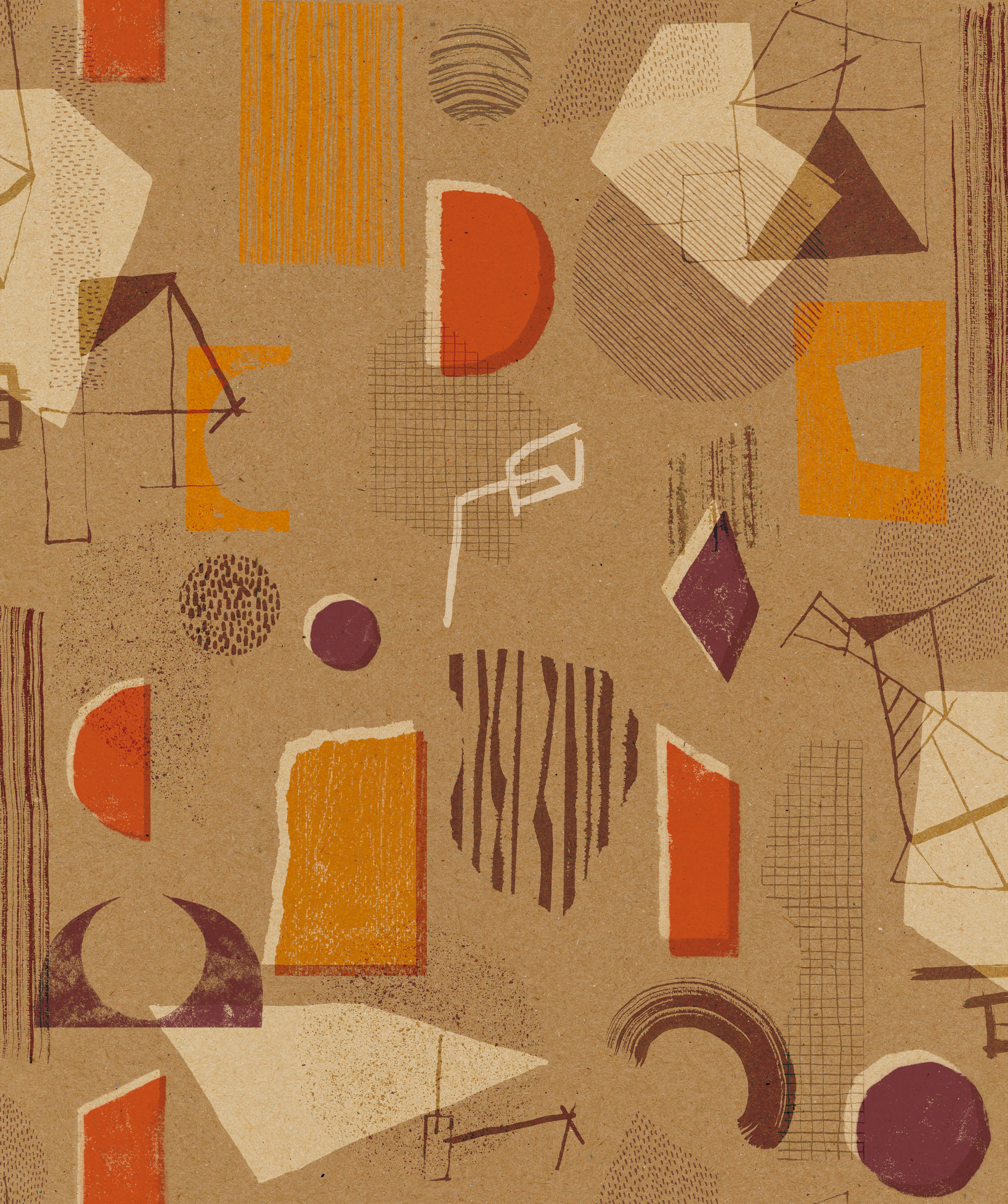 Brave Partiture, Cinnamon, din colecția L’Enfant Terrible, este un design geometric, în nuanțe de maro. Reinterpretare îndrăzneață a unei partituri muzicale de jazz.