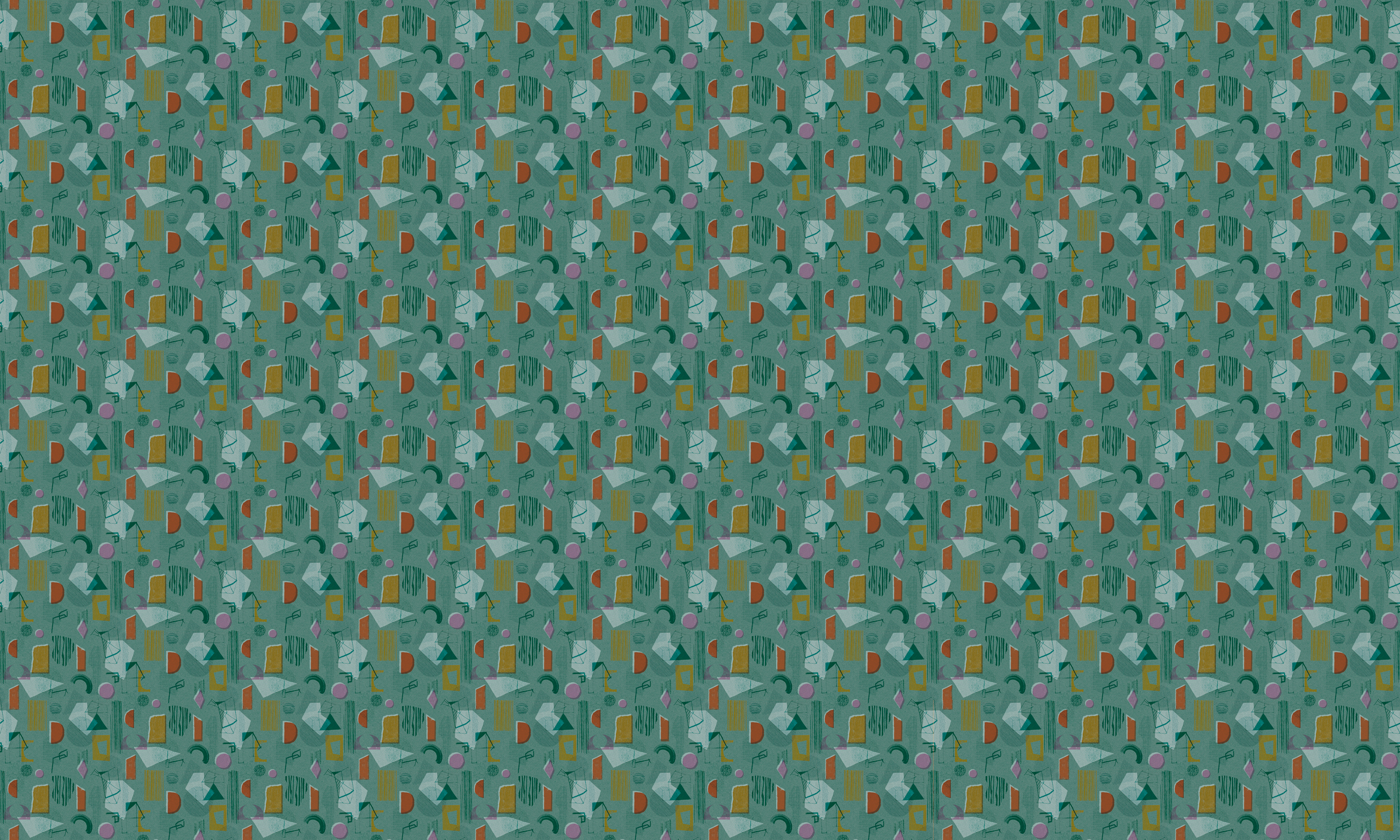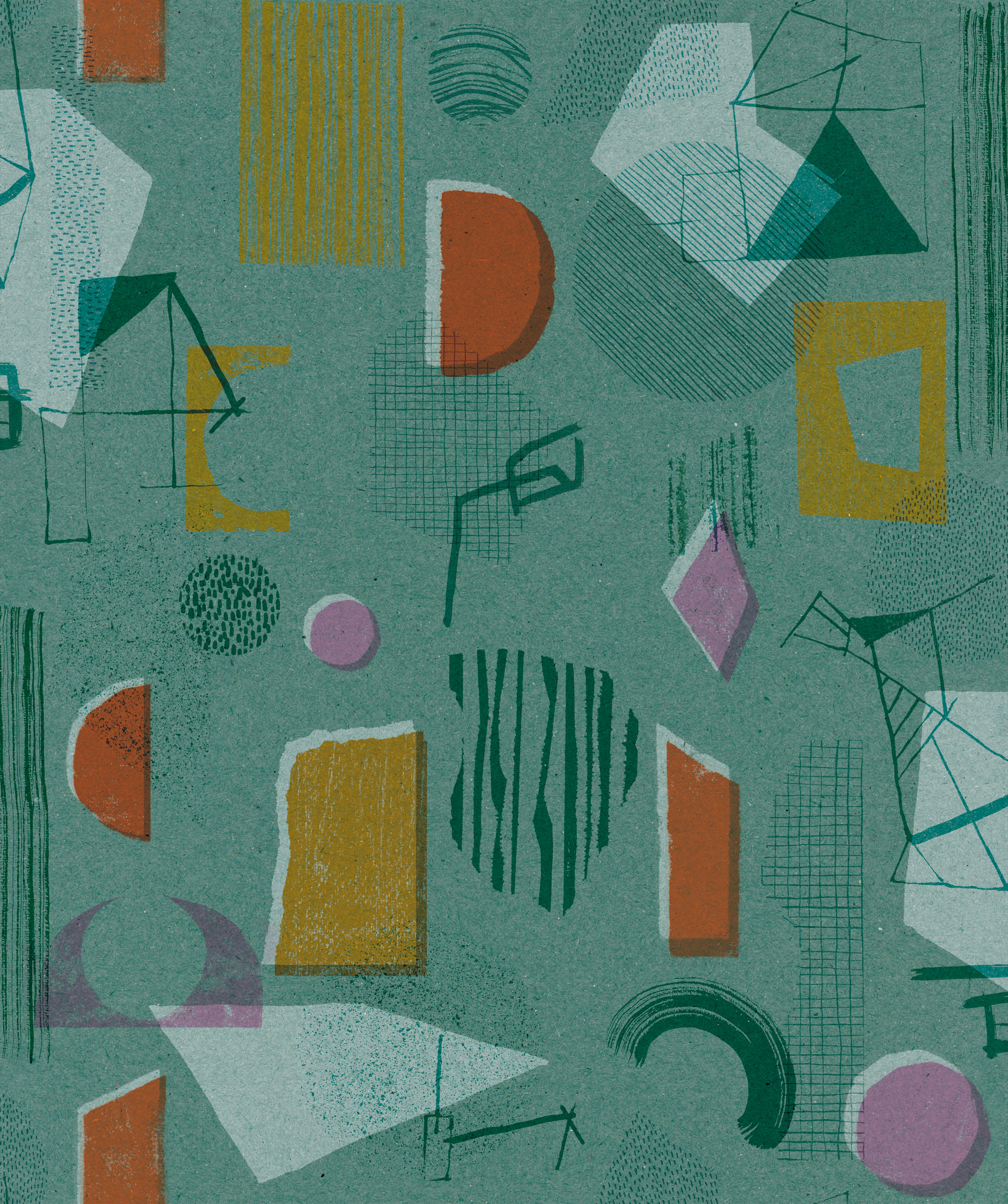 Brave Partiture, Turquoise, din colecția L’Enfant Terrible, este un design geometric, în nuanțe de verde. Reinterpretare îndrăzneață a unei partituri muzicale de jazz.