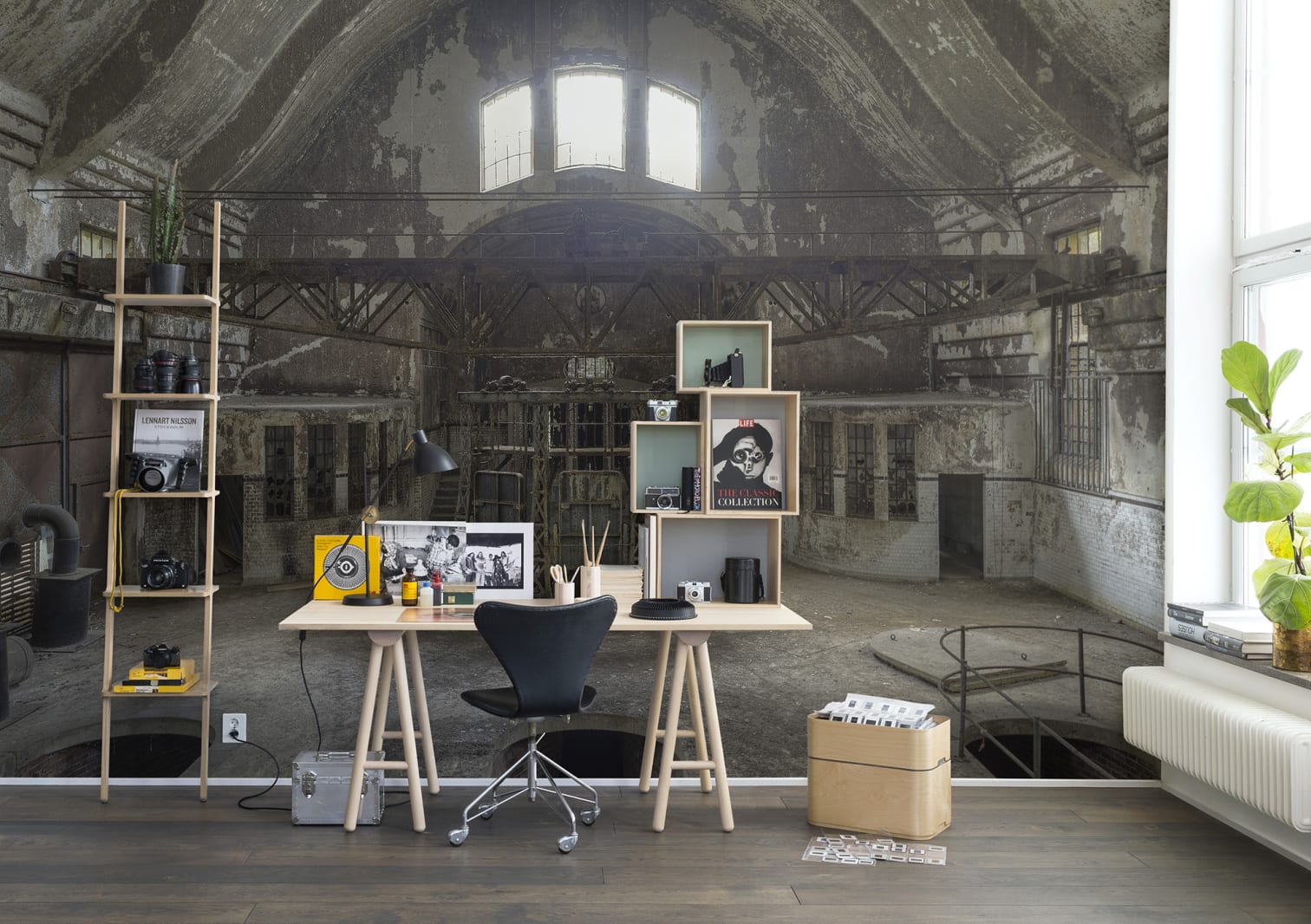 Fototapetul personalizat Dusty Rubber Stamp, de la Rebel Walls, potrivit pentru amenajări moderne, în stil vintage sau industrial, are un
