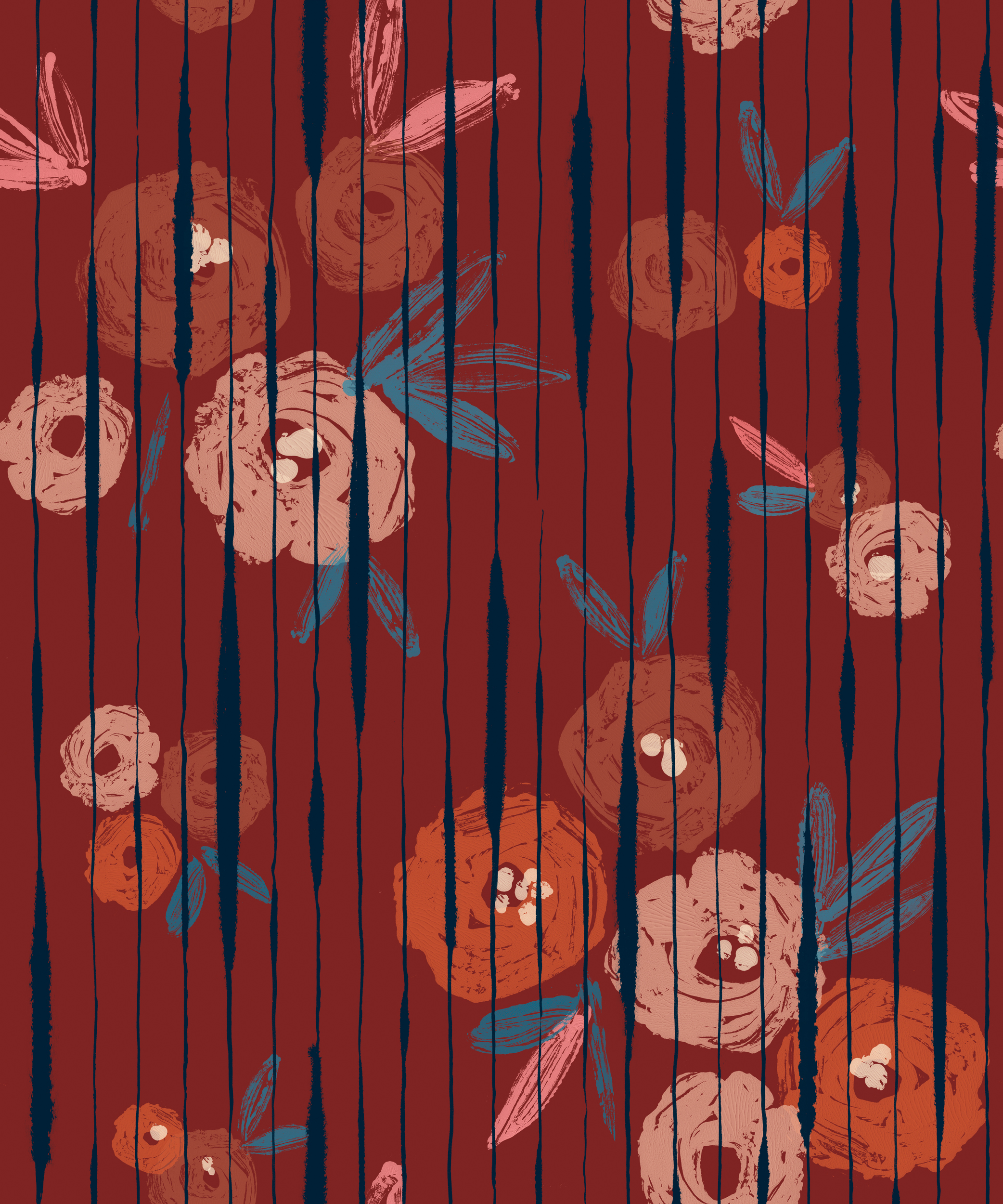 Broken Poppies, Red, din colecția Playful Layers. Transgresiune florală nebună: Textil tăiat + Maci desfigurați.