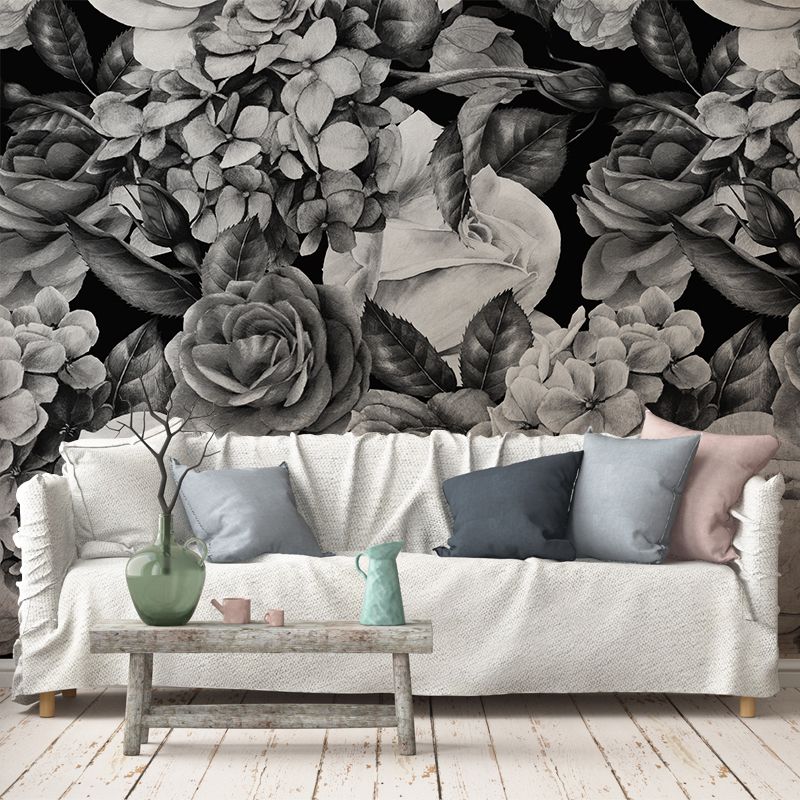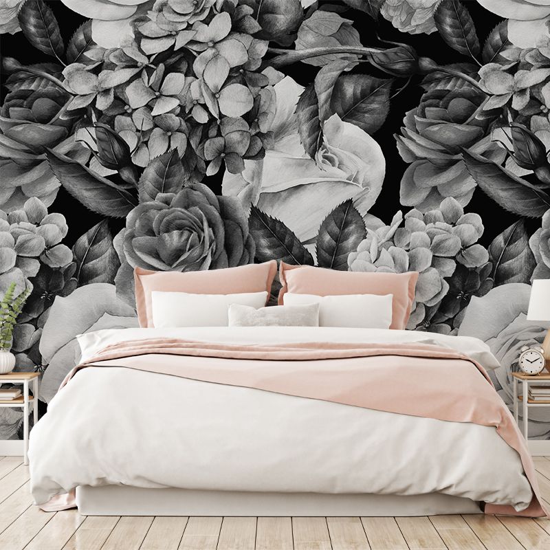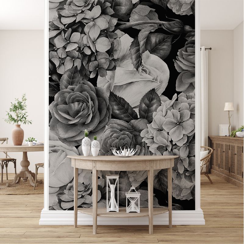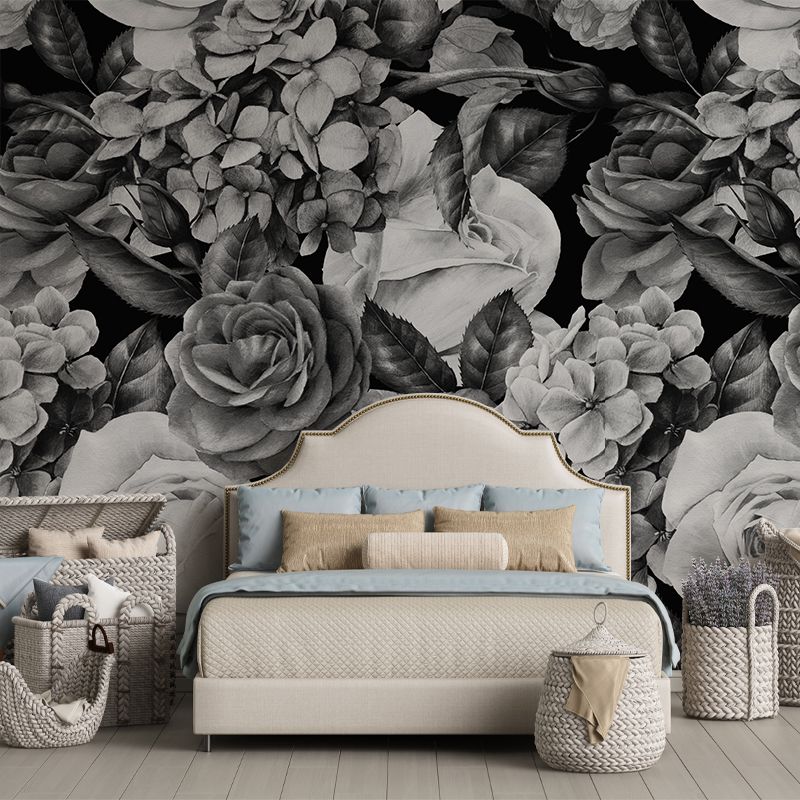 Adăugați o notă de eleganță și rafinament spațiului dumneavoastră cu acest tapet floral modern. Designul minimalist în nuanțe de gri și negru, cu flori delicate de trandafiri și hortensie, creează o atmosferă relaxantă și sofisticată. Perfect pentru un dormitor, living sau hol, acest tapet va adăuga o notă de personalitate și stil unic casei dumneavoastră.