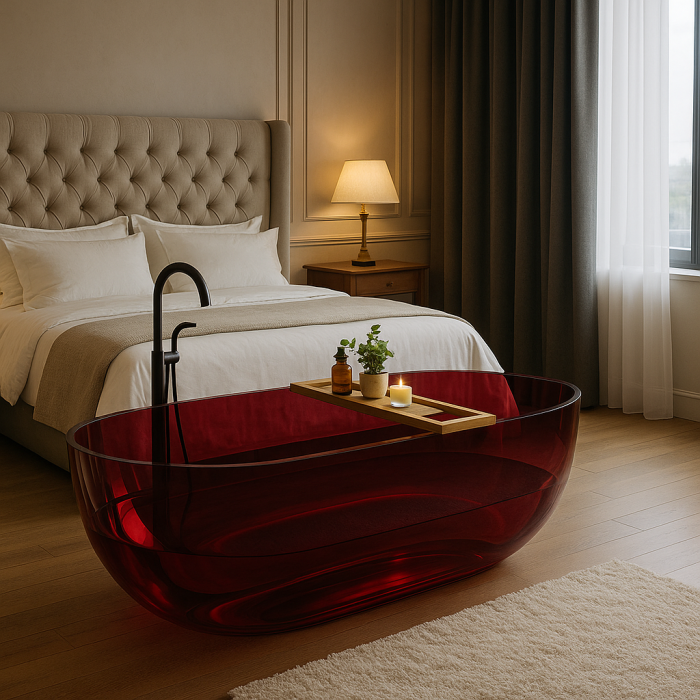 Transformă baia într-un sanctuar de relaxare și design contemporan cu cazi freestanding spectaculoase, realizate din sticlă sau rasina epoxidica de înaltă calitate, în nuanțe vibrante și elegante: albastru oceanic, roșu rubiniu sau antracit sofisticat.