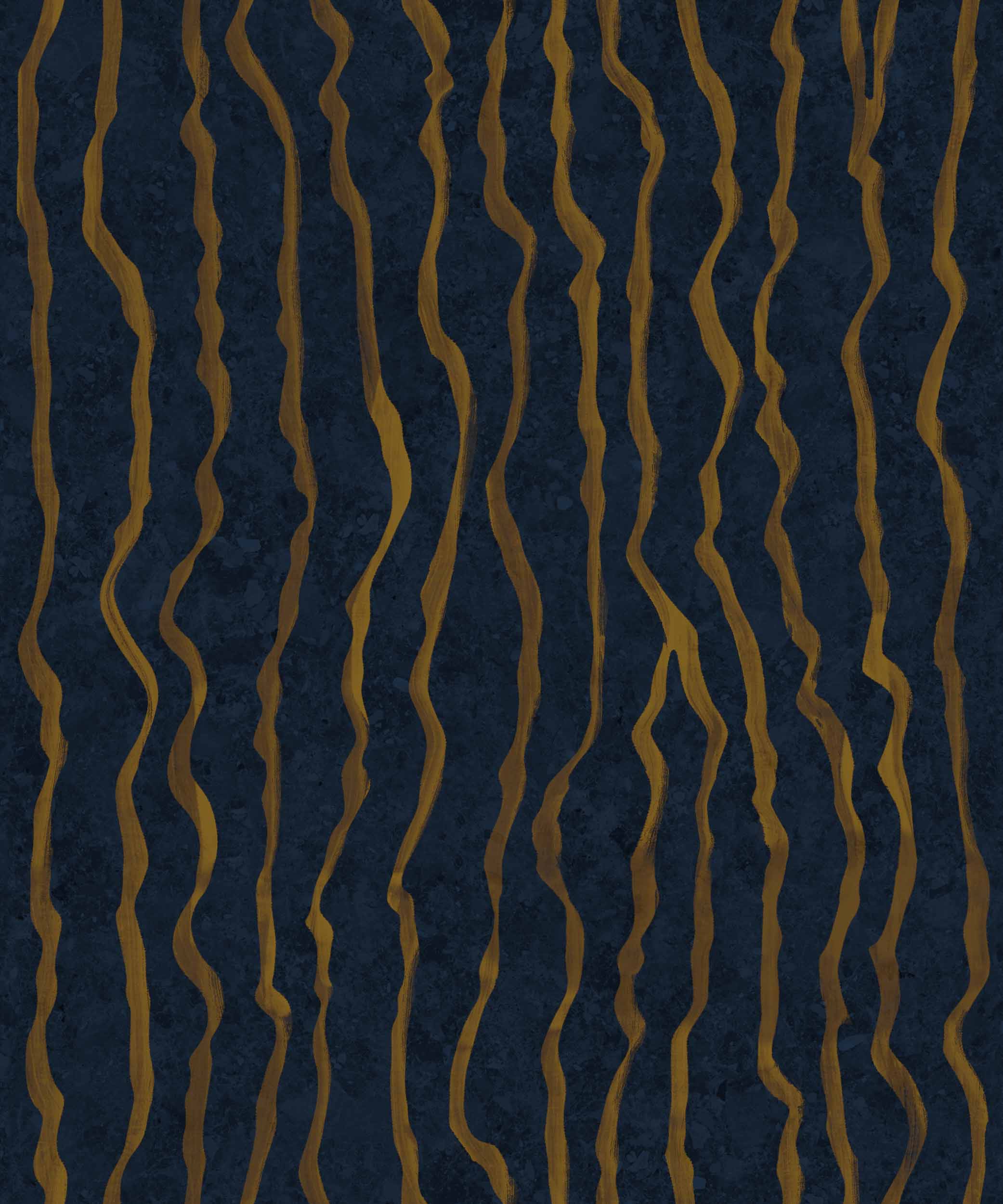 Adaugă un accent elegant interiorului tău cu acest tapet modern. Designul său distinctiv, cu linii aurii pe un fundal bleumarin, va transforma orice cameră într-un spațiu rafinat și primitor.