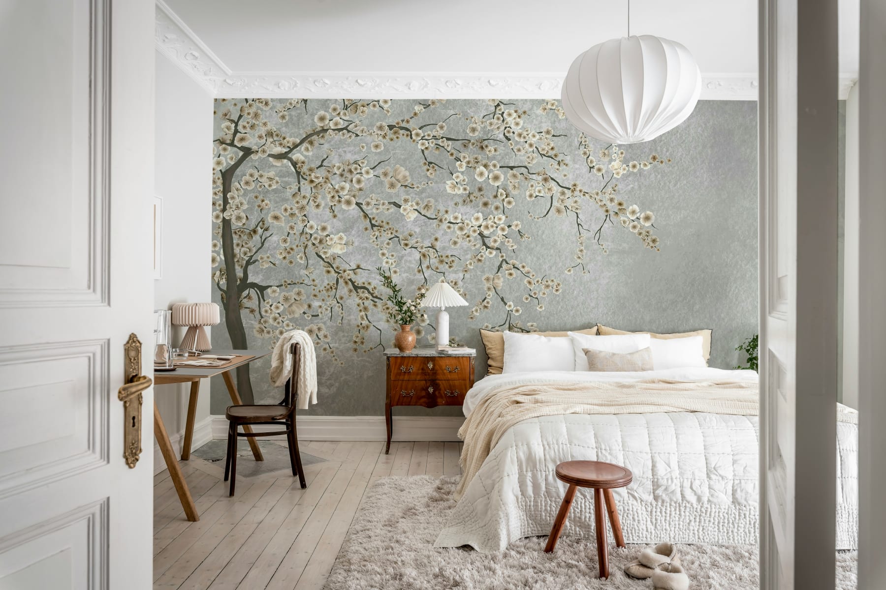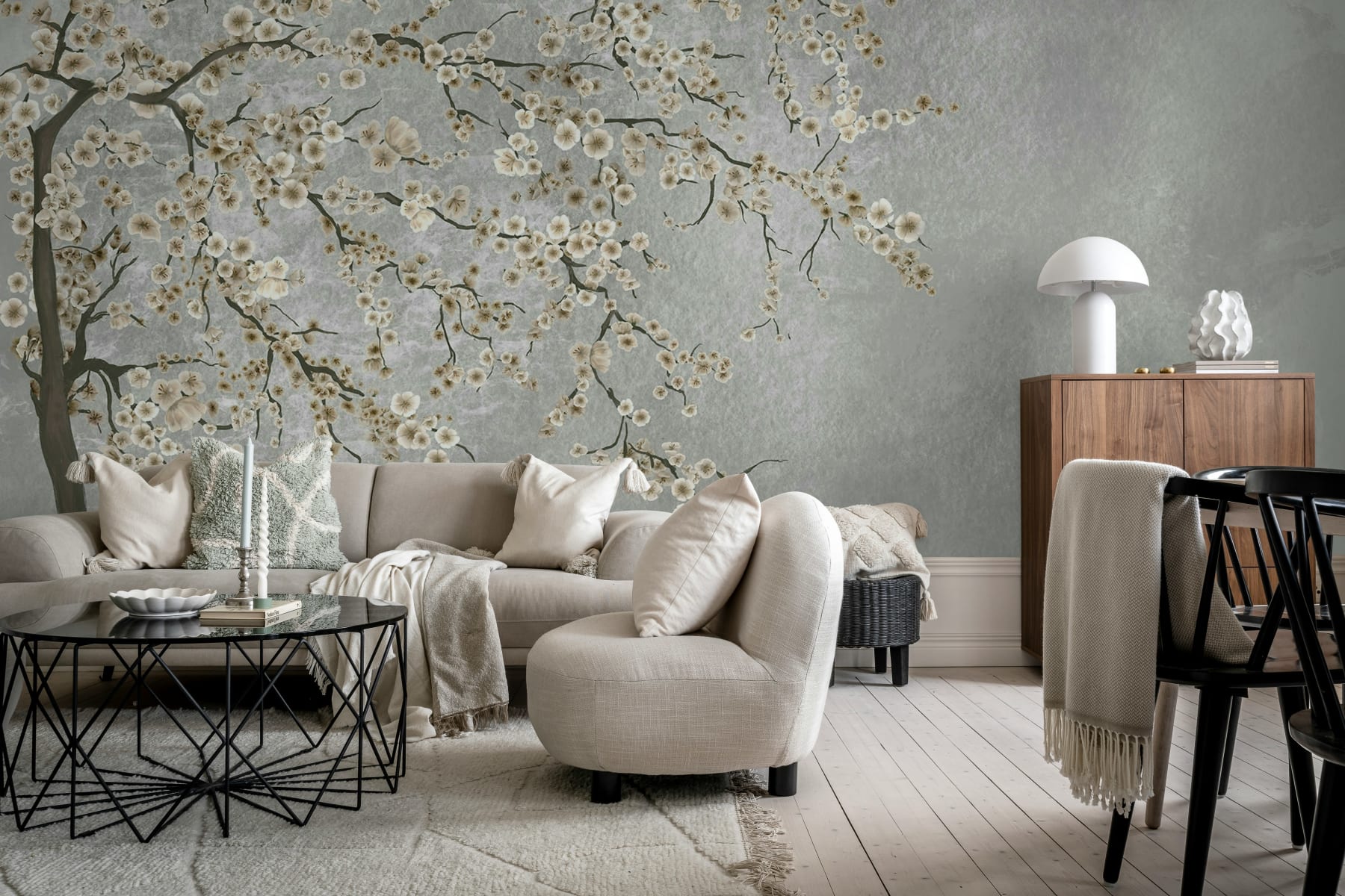Tapetul Calm Tree, Soft aduce eleganța liniștită a naturii în casa dvs., cu o reprezentare uimitoare a ramurilor înflorite care curg ușor pe perete. Așezat pe un fundal calmant roz-cenușiu, designul este atât liniștitor, cât și sofisticat, fiind perfect pentru dormitoare, spații de zi sau camere de meditație. Florile delicate de cireș adaugă o notă de culoare subtilă, sporind atmosfera liniștită a spațiului. Liniile organice și paleta rafinată fac din Calm Tree, Soft o alegere versatilă și atemporală pentru cei care caută un interior senin, dar elegant.