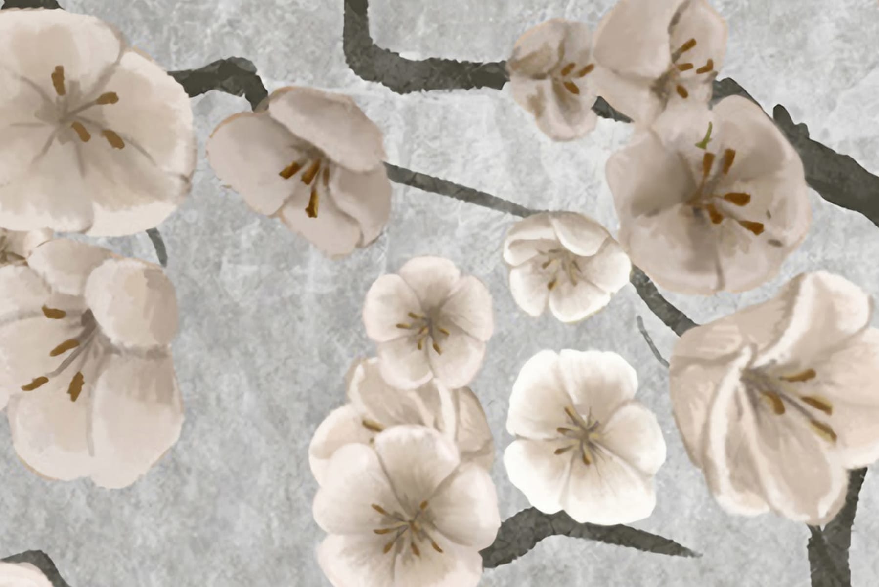 Crenguțe de magnolii înfloresc pe fototapetul nostru Magnolia pentru a vă aduce primăvara mereu în casă. Motivul floral delicat, în