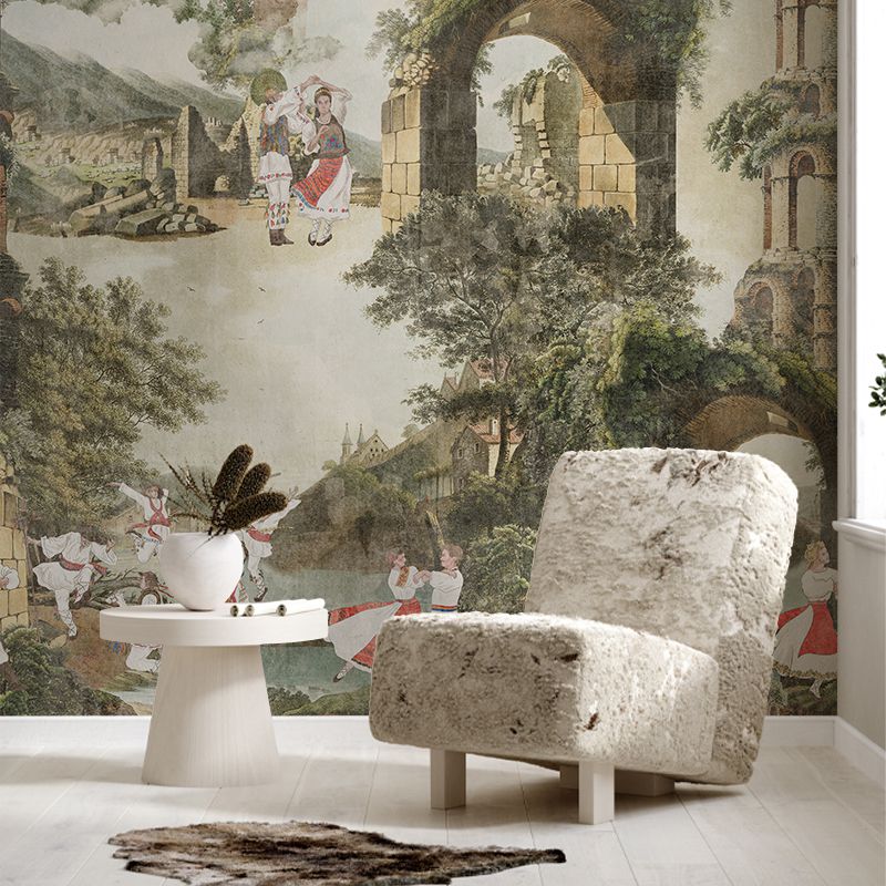 Călușarii, o tradiție românească veche de secole, sunt reprezentați în toată splendoarea lor pe acest tapet texturat. Imaginea prezintă un grup de dansatori în costume tradiționale, dansând într-un peisaj pitoresc. Tapetul este perfect pentru a adăuga un strop de culoare și personalitate camerei tale, aducând un omagiu tradițiilor românești.