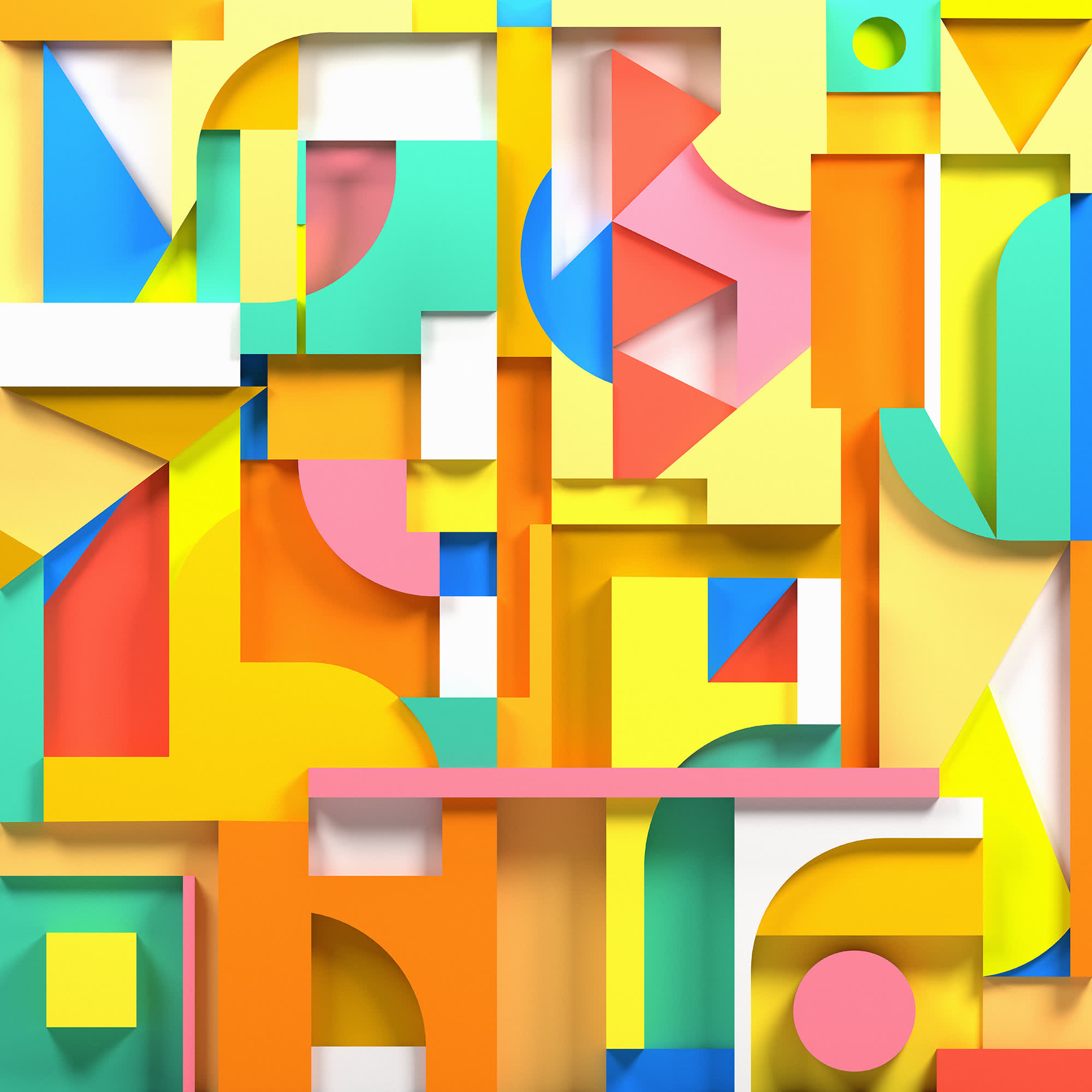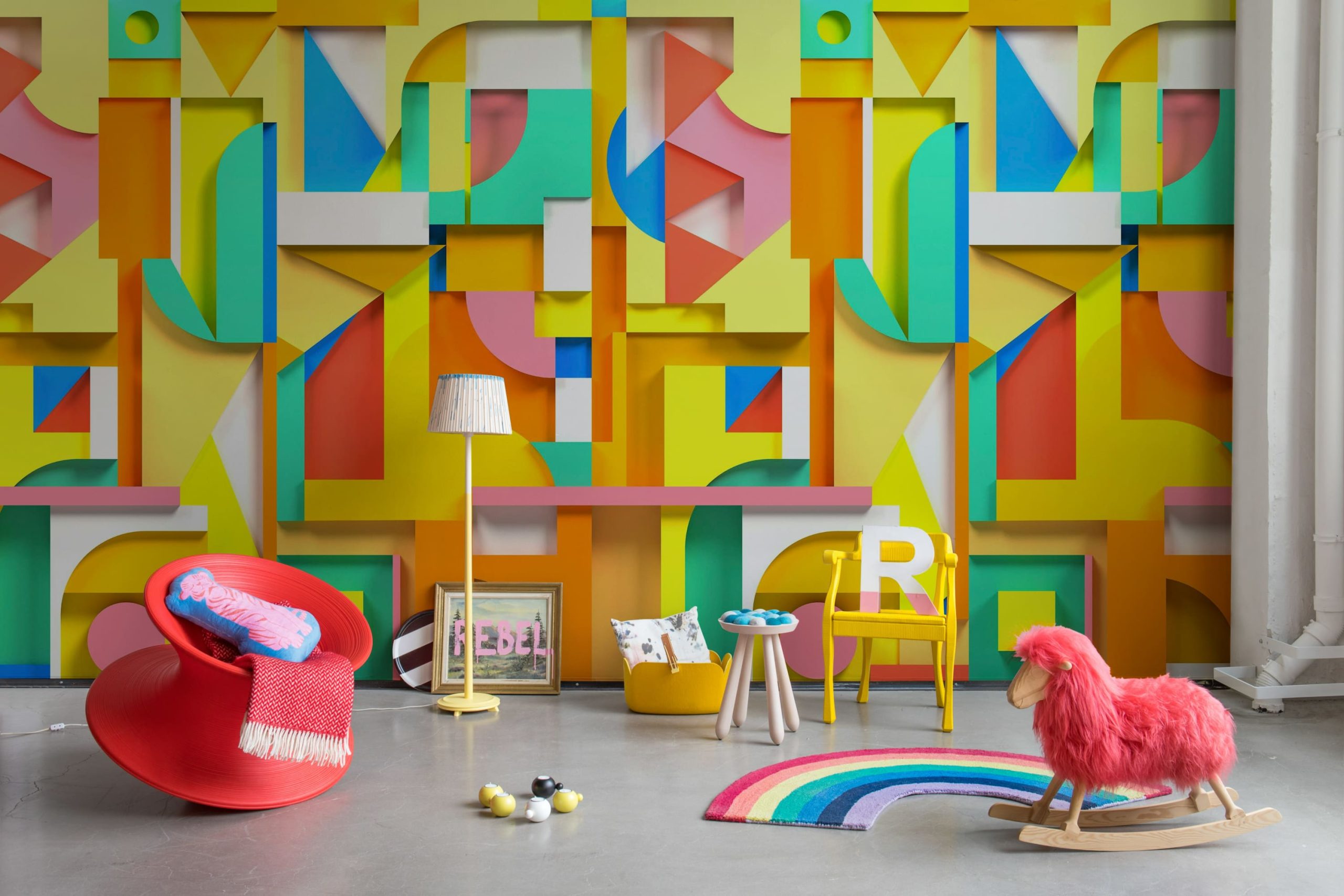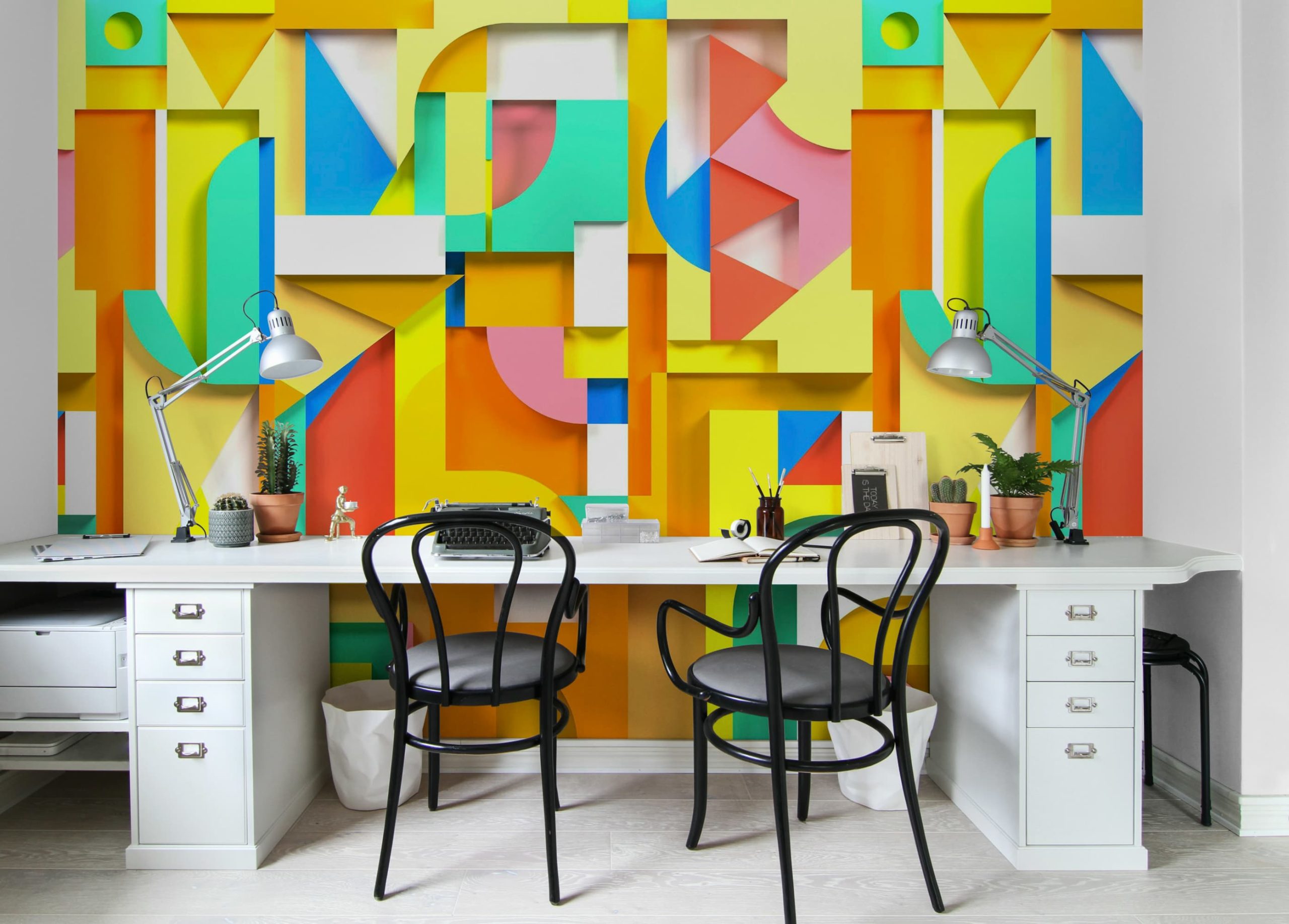 Transformă-ți spațiul cu un fototapet vibrant, plin de forme geometrice colorate. Ideal pentru un decor modern și plin de energie.
