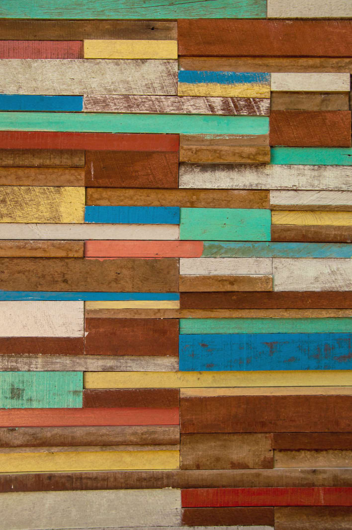 Acest fototapet cu scânduri în diferite culori este combinația perfectă de stil shabby-chic.