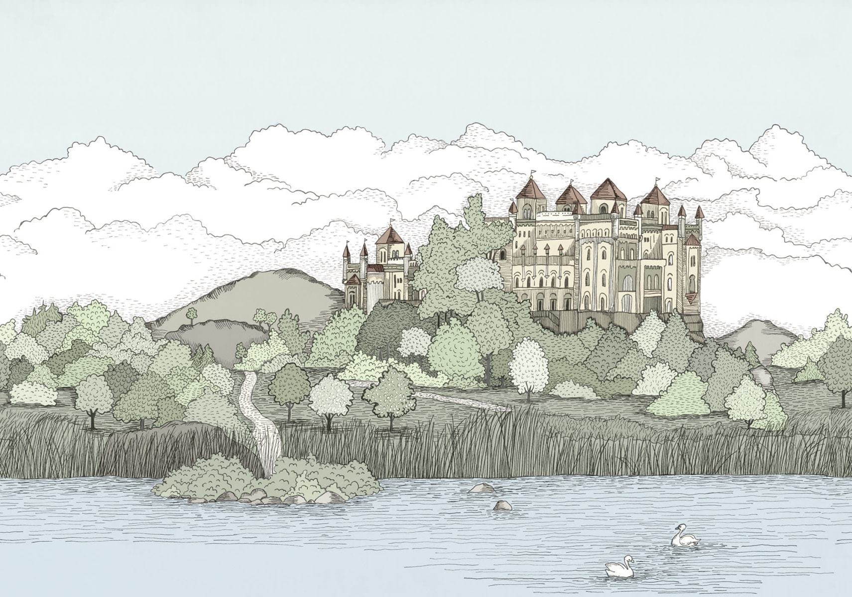 Home Tapet și Fototapet Castle by the Lake, Soft Green, Rebel Walls