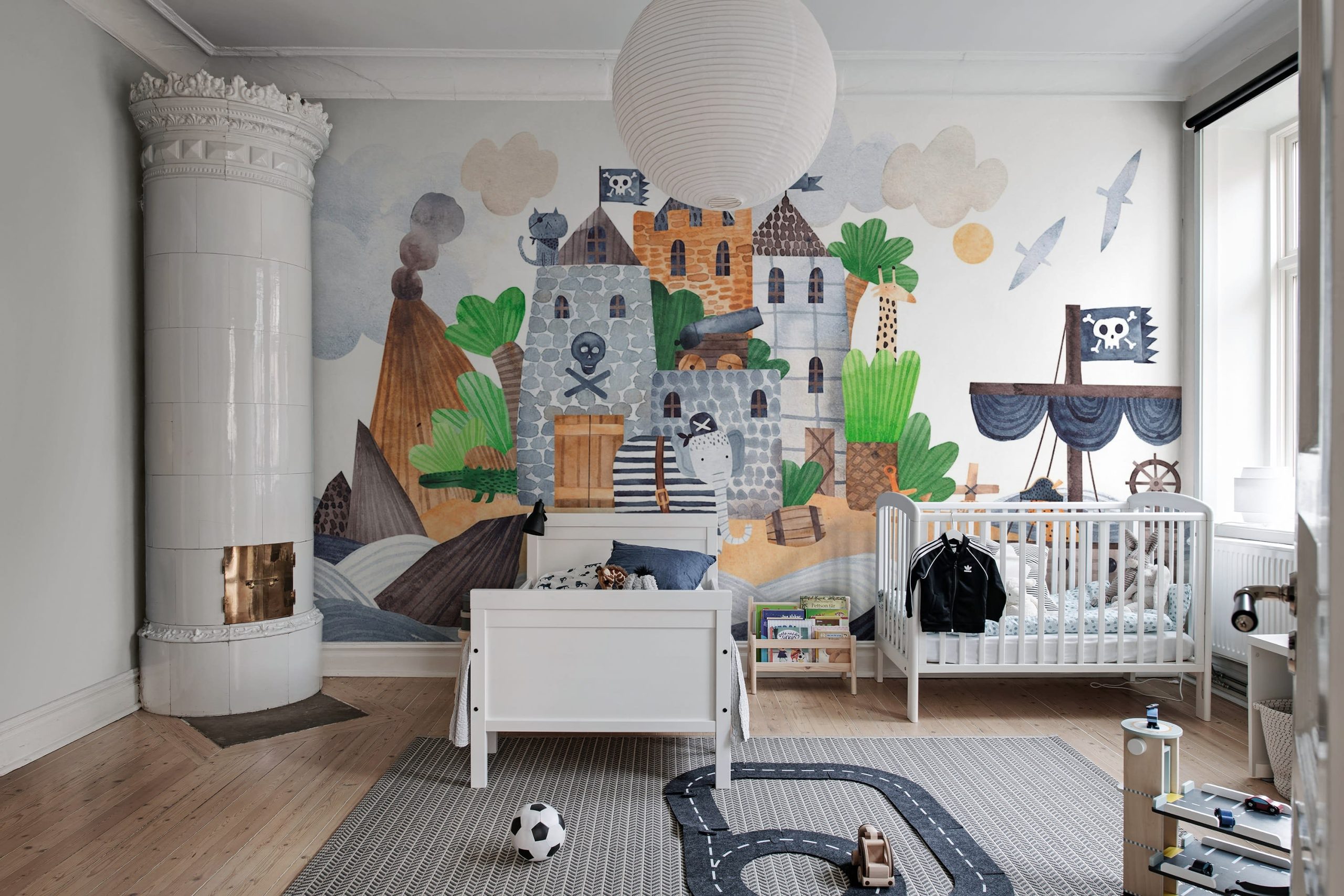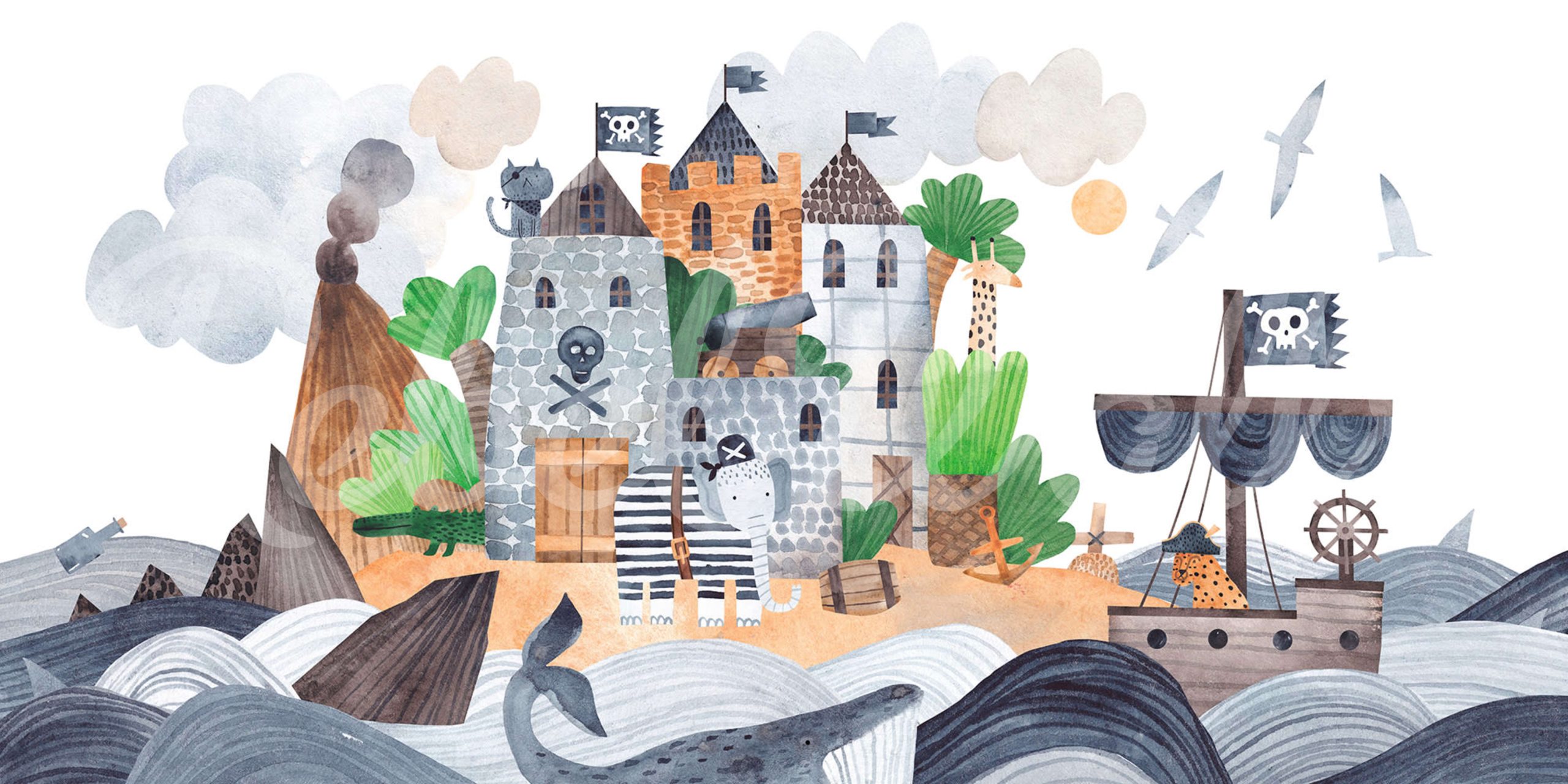 Porniți într-o aventură captivantă cu tapetul Castle of Pirates, conceput special pentru copii. Acest design plin de fantezie și imaginație prezintă animalele adorabile ale piraților care se află într-o fortăreață, pe o insulă tropicală. Compoziția colorată și plină de veselie aprinde imaginația copilului și creează un mediu magic în care pot explora, visa și se juca.
