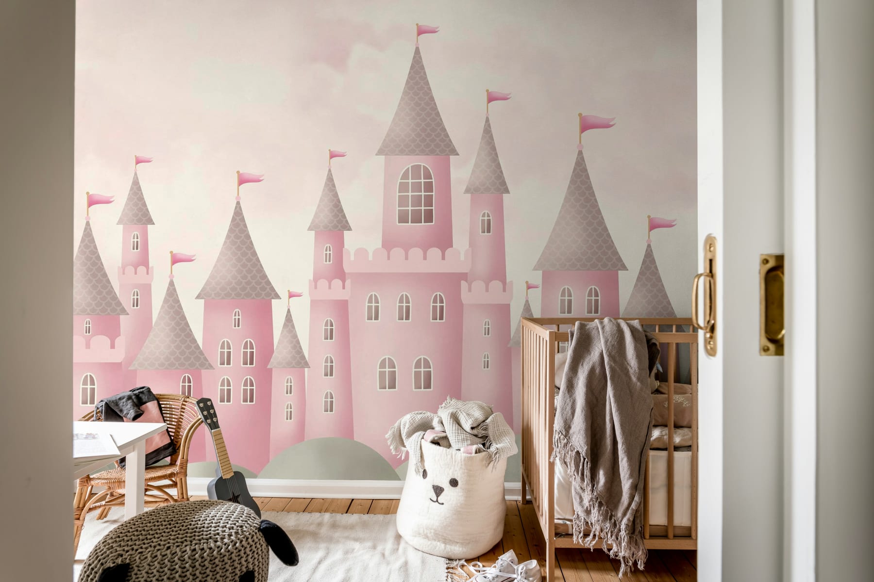 Tapetul Castle Village, Pink prezintă o serie fermecătoare de castele roz pastel, cu turnuri elegante și stegulețe fluturând pe fundalul unui cer blând și înnorat. Ideal pentru grădinițe, camere de joacă sau dormitoare, acest tapet adaugă o notă de fantezie și căldură, transformând orice spațiu într-un sat magic. Tonurile roz liniștitoare creează o ambianță blândă și primitoare, care este atât jucăușă, cât și liniștitoare. Castle Village, Pink este perfect pentru cei care doresc să creeze un refugiu inspirat din basme, oferind un cadru frumos și imaginativ care îi încântă pe cei mici și pe cei mari deopotrivă.