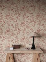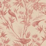 Adaugă un plus de rafinament interiorului tău cu acest tapet roșu delicat, cu model floral și păsări stilizate. Ideal pentru un decor primitor și sofisticat.