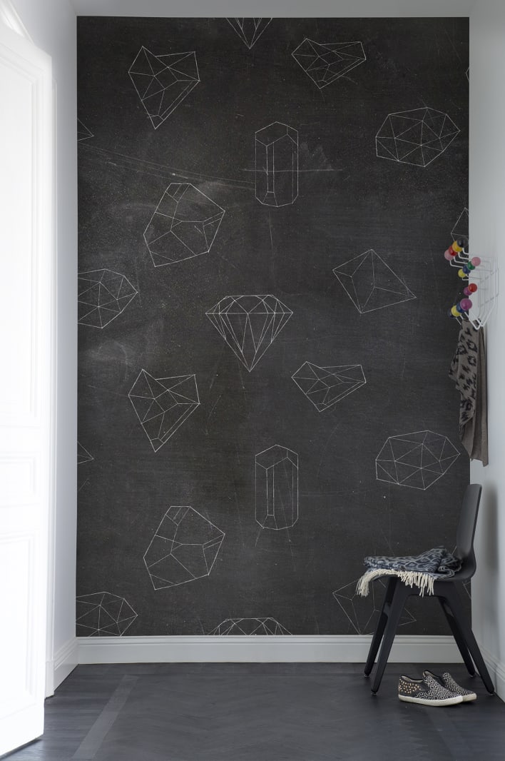 O tablă neagră, pe care sunt reproduse în cretă albă figuri geometrice în spațiu. Prisme, cilindri și diamante sunt dispuse aleator într-un design 3D care oferă un efect de adâncime. Fototapetul Chalkboard transformă orice perete în punctul focal al întregii încăperi!