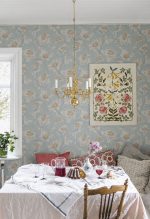 Sanna light blue este un tapet decorat cu flori de mazăre dulce care plutesc grațios pe deasupra peretelui. Floarea a
