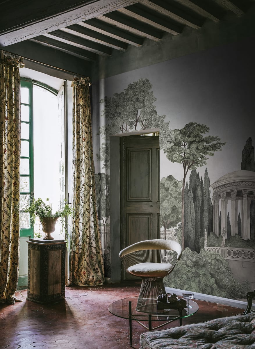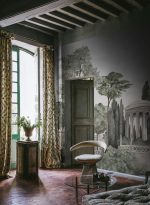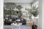 Chatsworth Park este o pictură murală la scară largă, cu copaci luxurianți și clădiri impunătoare. Motivul este foarte detaliat și atrage privirea. Pictat manual de designerul de interior și pictorul britanic Jack Kinsey. Aceasta variantă de culori vine în nuanțe delicate de verde, albastru și gri.