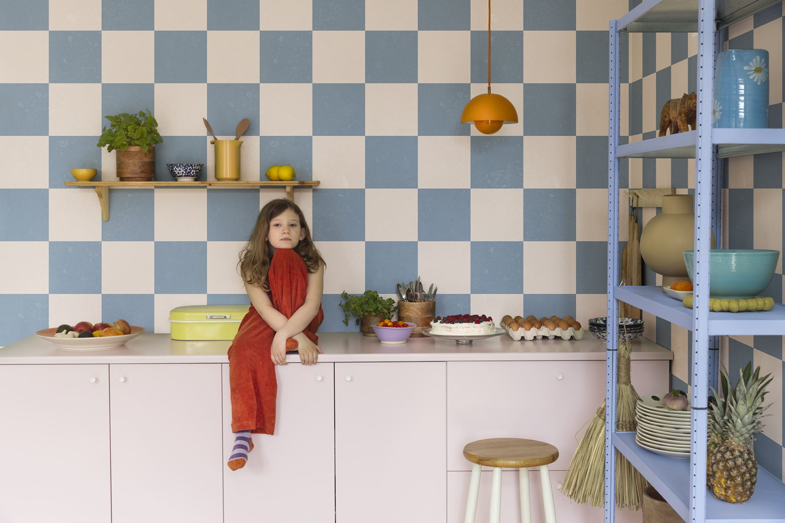 Home Tapet și Fototapet Chess, Blue & Pink, Rebel Walls