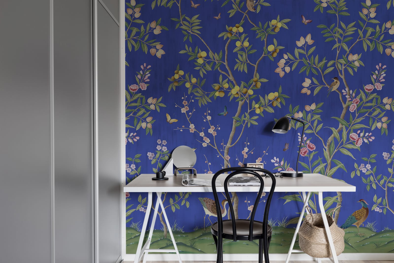 Fototapetul nostru luxos și sofisticat, „Chinoiserie Chic”, este rezutatul minunatei colaborări cu Diane Hill, care prezintă arbori citrici, păsări exotice și fluturi jucăuși. Vrei un fototapet mai mare sau mai mic? Sau vrei să dai iluzia de spațiu mai mare pe înălțime? Nicio problemă, dimensiunile fototapetului nostru se adaptează pentru orice spațiu. Combinarea acestui model cu designul nostru „Brushstrokes” îl face ideal și pentru cele mai înalte zone de tavan (cu plăcere!).
