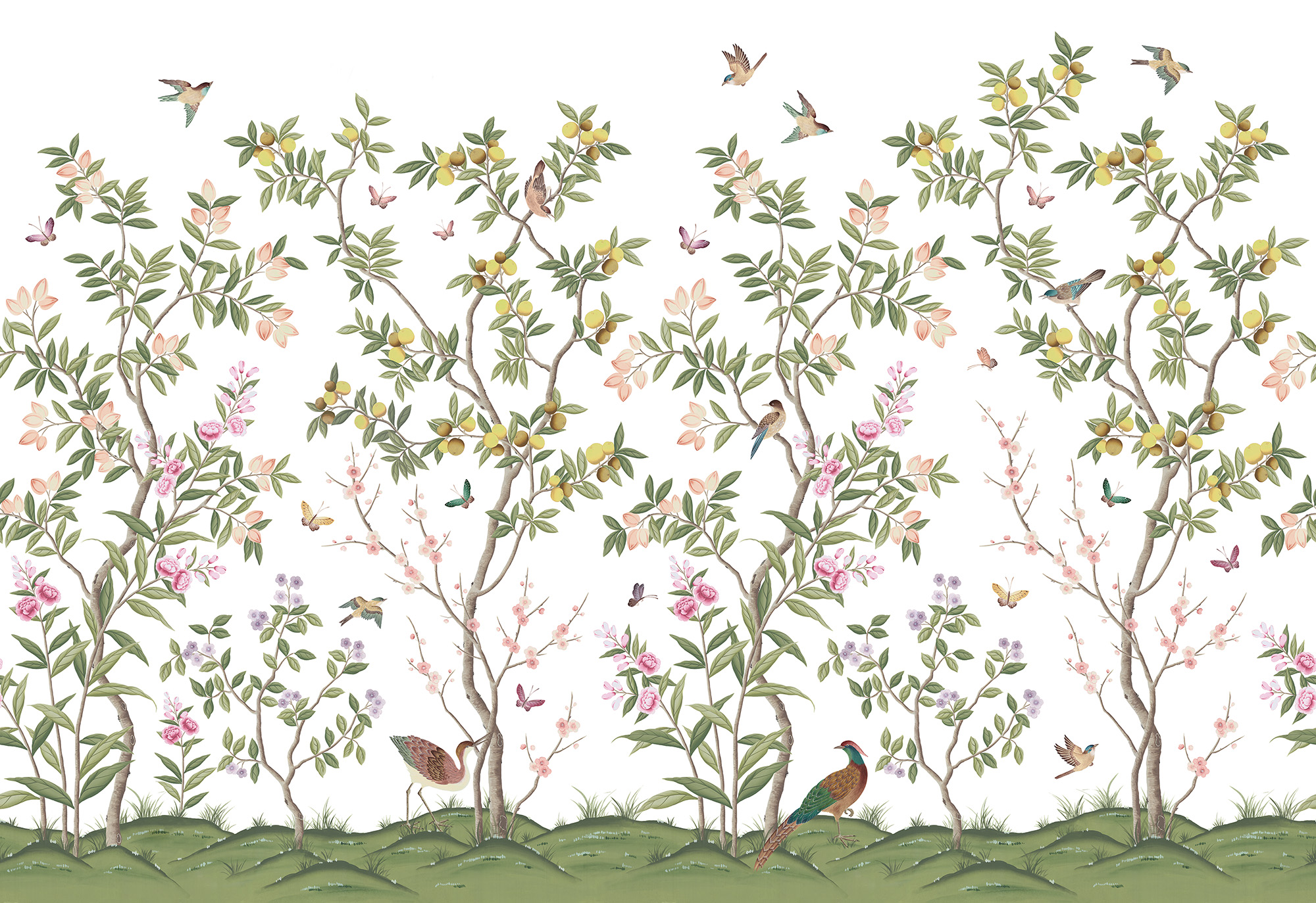 Fototapetul nostru luxos și sofisticat, „Chinoiserie Chic”, este rezutatul minunatei colaborări cu Diane Hill, care prezintă arbori citrici, păsări exotice și fluturi jucăuși. Vrei un fototapet mai mare sau mai mic? Sau vrei să dai iluzia de spațiu mai mare pe înălțime? Nicio problemă, dimensiunile fototapetului nostru se adaptează pentru orice spațiu. Combinarea acestui model cu designul nostru „Brushstrokes” îl face ideal și pentru cele mai înalte zone de tavan (cu plăcere!).