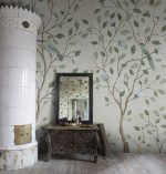 Tapetul fermecător Chinoiserie Dream este pictat manual în aquarelle. Copacii delicați cu frunze luxuriante și flori albe și moi creează o atmosferă senină, poetică. Păsări elegante cocoțate printre ramuri împodobesc designul, care aduce un sentiment de armonie naturală și sofisticare artistică. Chinoiserie Dream, Light Green, are o bază bej moale cu un model rafinat verde, maro și albastru.