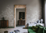 Chinoiserie Lace Panels este o uimitoare pictură murală de inspirație chinezească, pictată manual și având panouri grandioase. Modelul este realizat de designerul de interior și pictorul Jack Kinsey, care și-a găsit inspirația pentru tapeturile chinezești în numeroasele case spectaculoase pe care le-a vizitat în Norfolk. Designul prezintă păsări grațioase și ramuri delicate înflorite. Varianta Natural Beige vine în nuanțe de bej pe un fundal cald, viu, bej mai închis.
