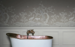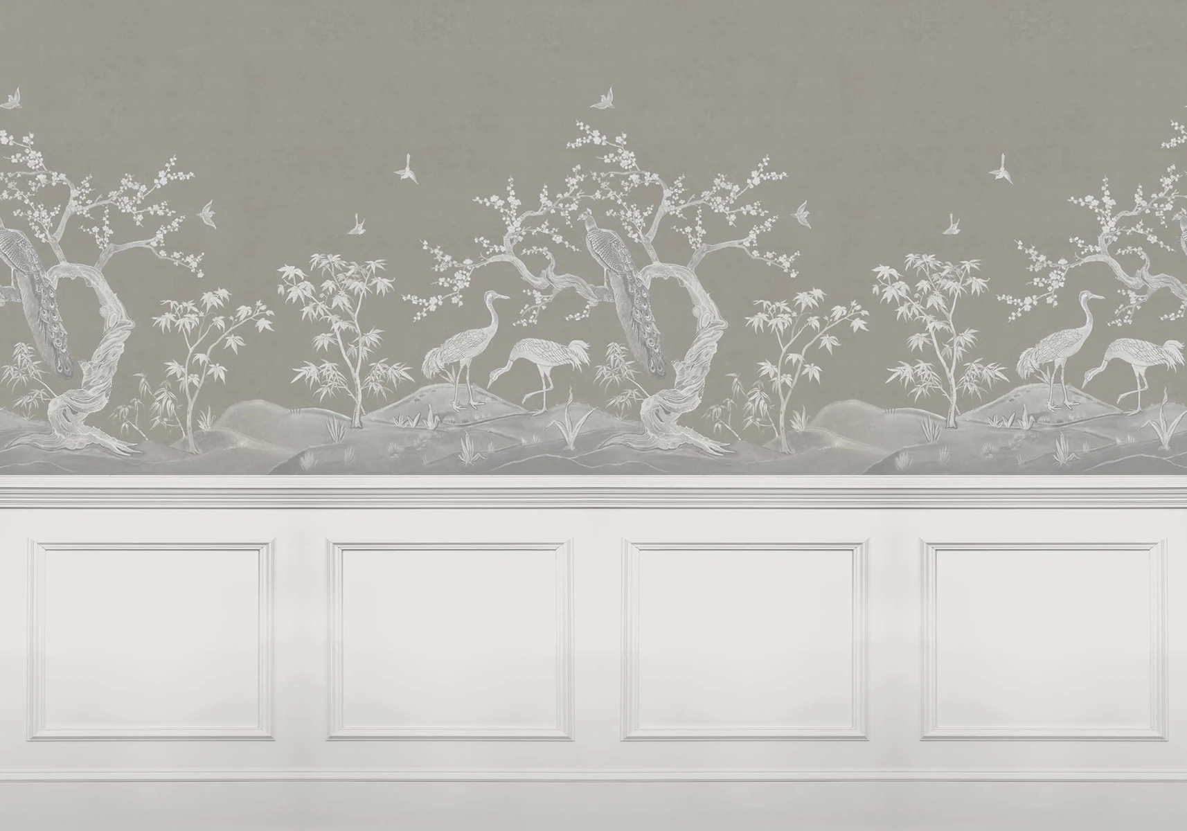 Chinoiserie Lace Panels este o uimitoare pictură murală de inspirație chinezească, pictată manual și având panouri grandioase. Modelul este realizat de designerul de interior și pictorul Jack Kinsey, care și-a găsit inspirația pentru tapeturile chinezești în numeroasele case spectaculoase pe care le-a vizitat în Norfolk. Designul prezintă păsări grațioase și ramuri delicate înflorite. Această variantă de culori vine în nuanțe de bej pe un fundal cald, viu, bej mai închis.