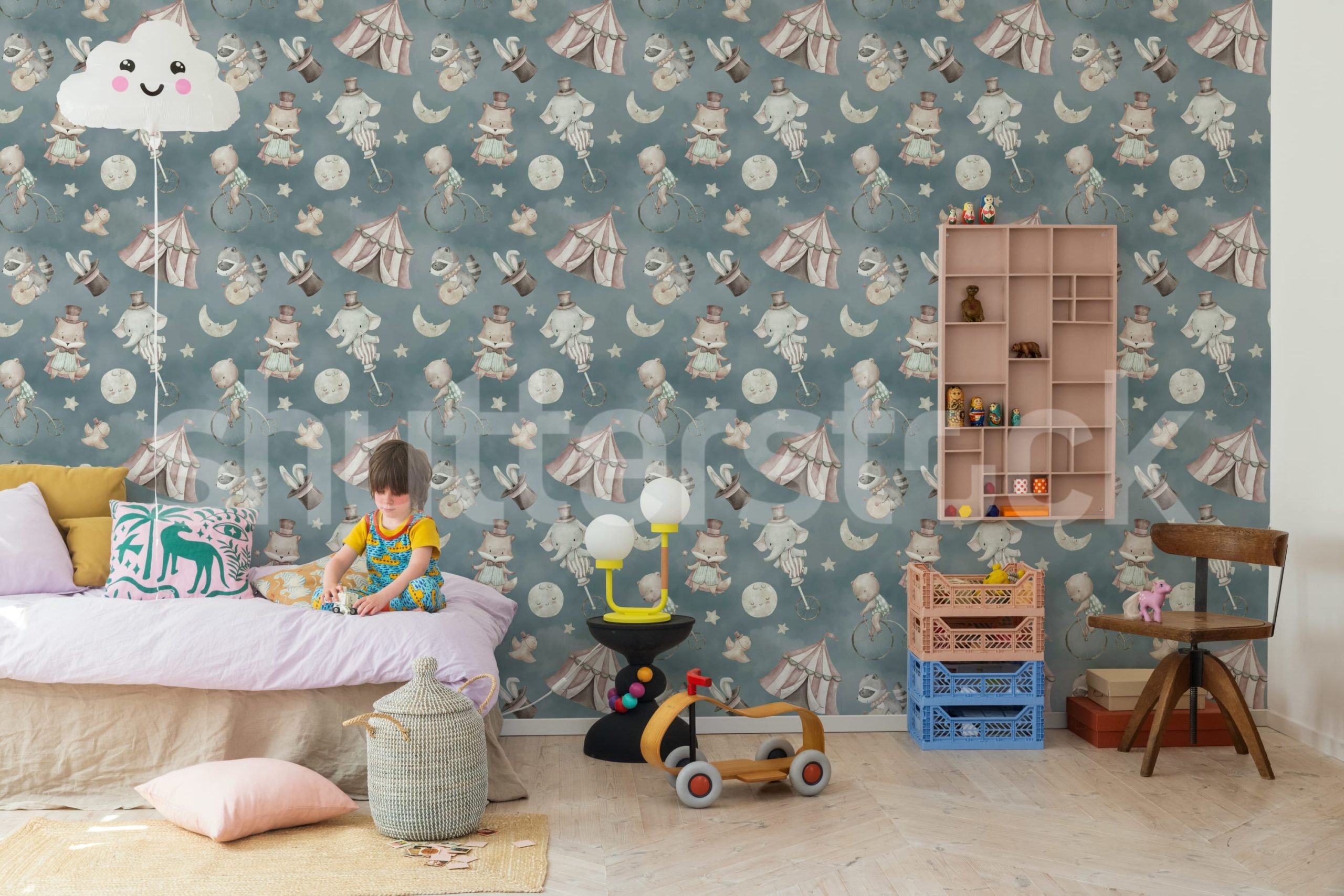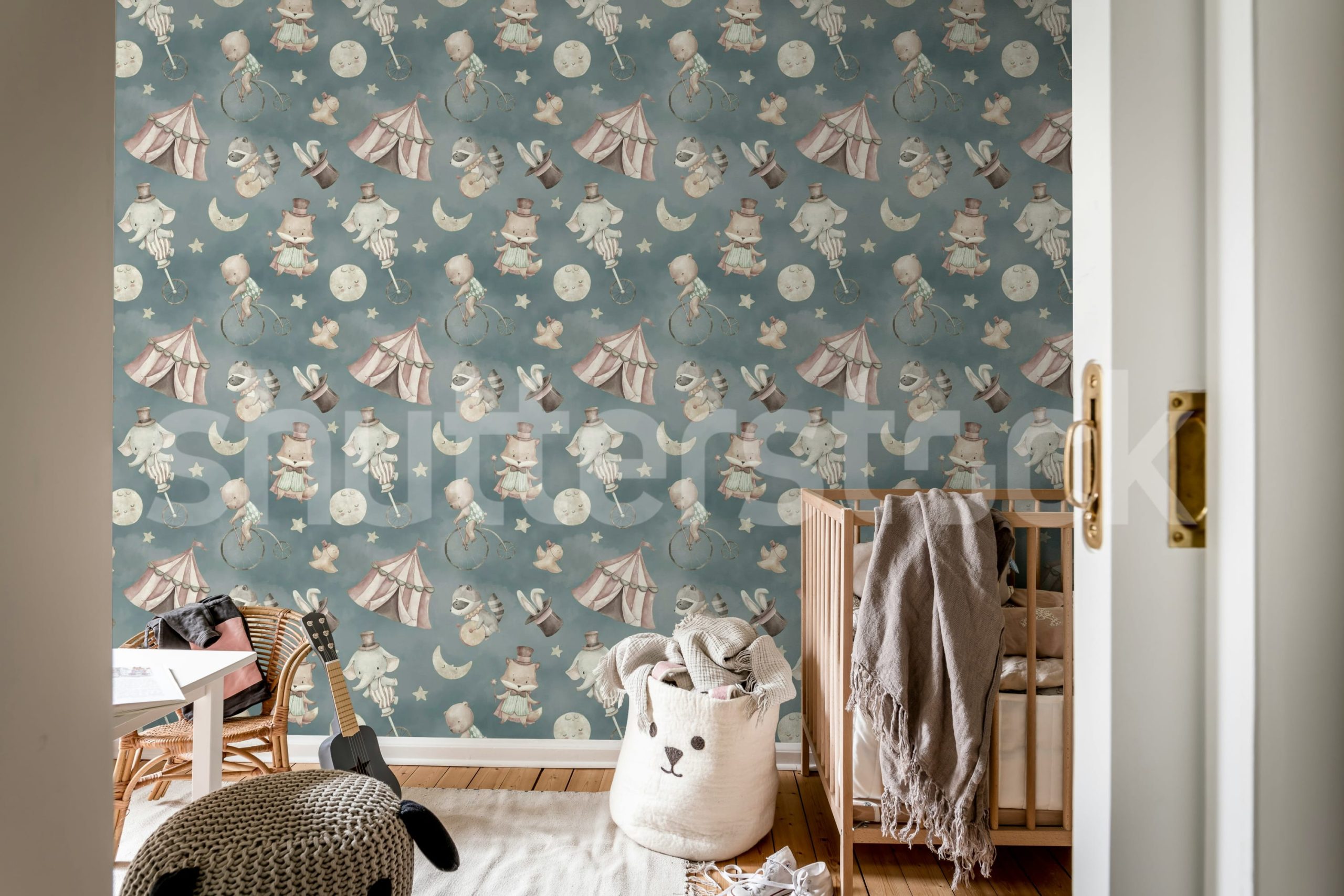 Adaugă o notă unică camerei copilului cu acest tapet vintage. Perfect pentru a crea un spațiu de poveste. Animale, circ și nuanțe calde, totul pentru un decor fermecător.