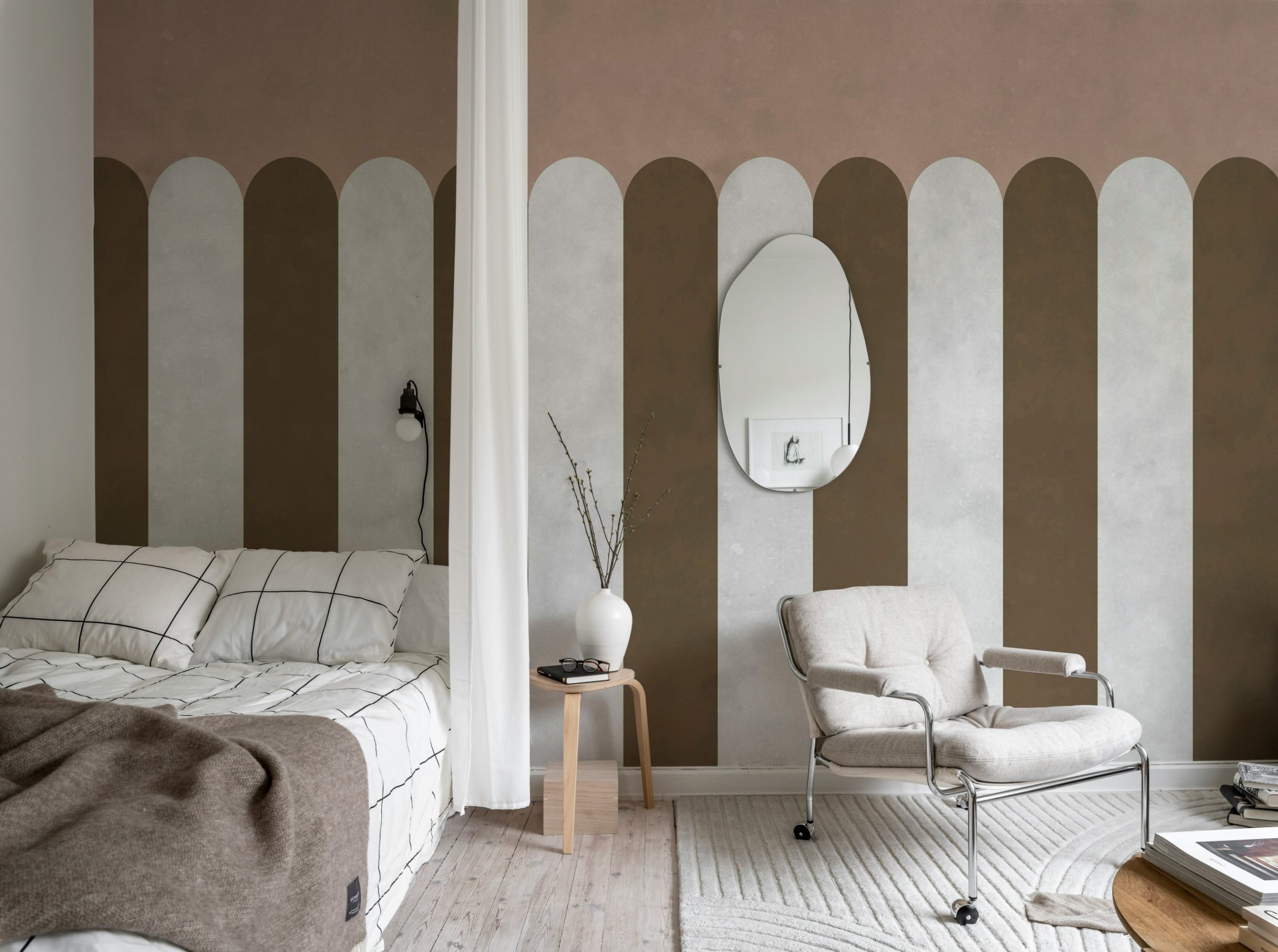 Adaugă un strop de eleganță cu acest fototapet cu dungi verticale în nuanțe de ciocolată și gri. Ideal pentru un decor modern și sofisticat.Transformă-ți casa cu un design atrăgător și stilat!