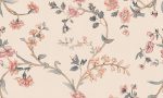 Un model floral romantic din secolul al 19-lea, cu o expresie plăcută pictată manual în culori armonioase. Delicat ca apariție, aduce o senzație vintage. Clara, Pastel, are flori în albastru pastel și roz pe un fundal bej.